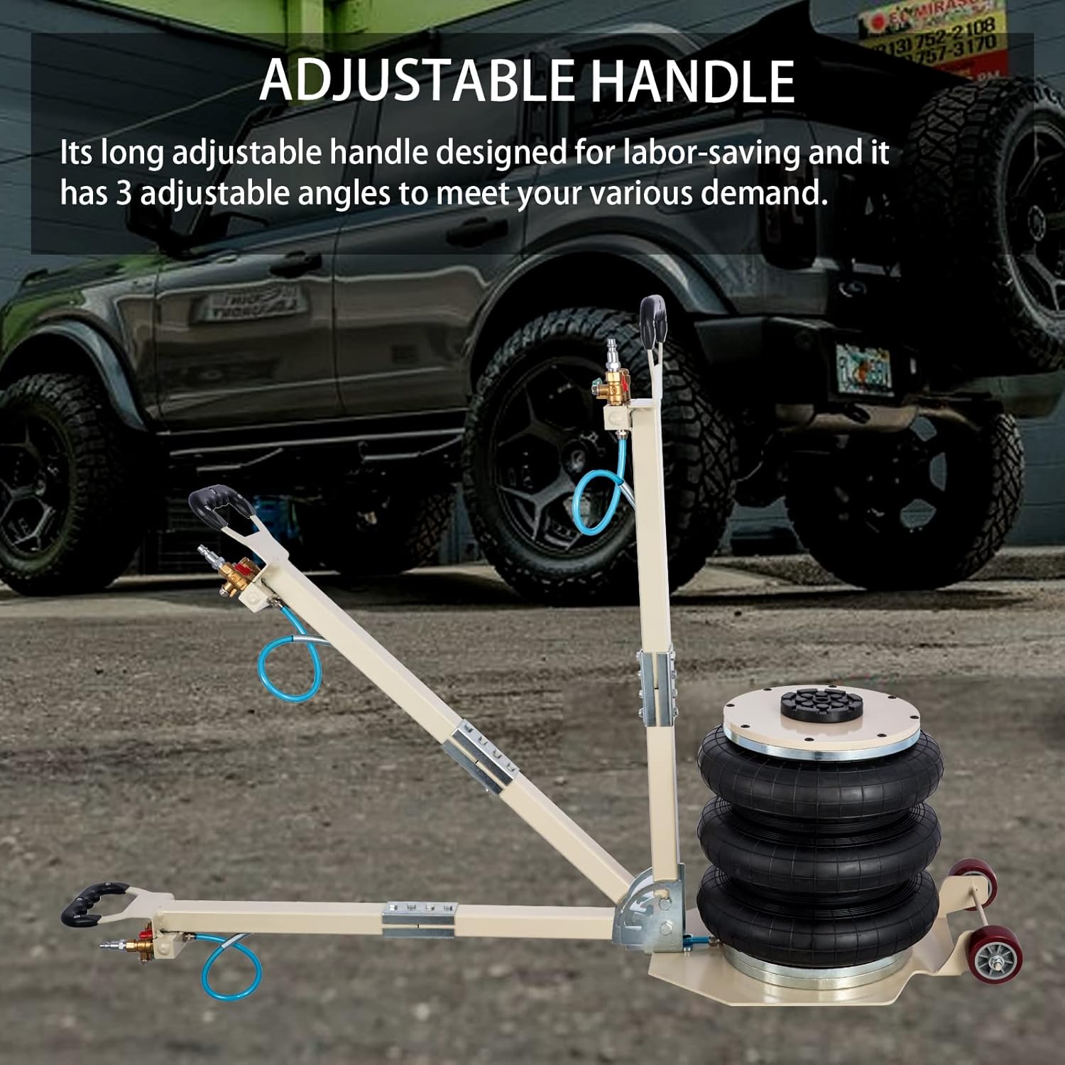 CXRCY 5 Ton Air Jack for Cars & Trucks - 11000LBS Capacity Pneumatic Airbag Jack with Adjustable Long Handle, Fast Lifting up to 16 Inch for Cars,Trucks(White Triple Bag Air Jack)