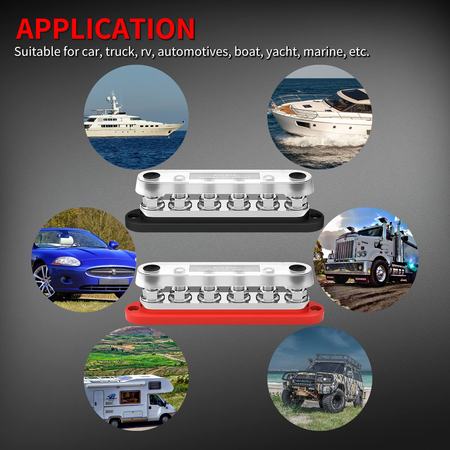 - 【Product Name】- Bus bar terminal block 12v, these battery bus bar 12v will come in pairs, includes one positive bus bar (red) and one ground bus bar (black).