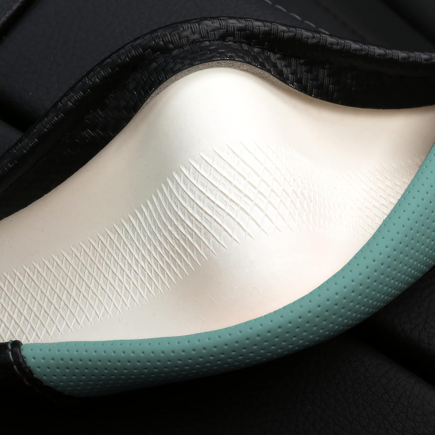 Car Steering Wheel Covers for Women Padded Carbon Fiber PU Leather Cute Auto Interior Accessories for Vehicle, Sedan, Universal, Anti Slip, Green, Standard Size 14.5-15"(37-38cm)