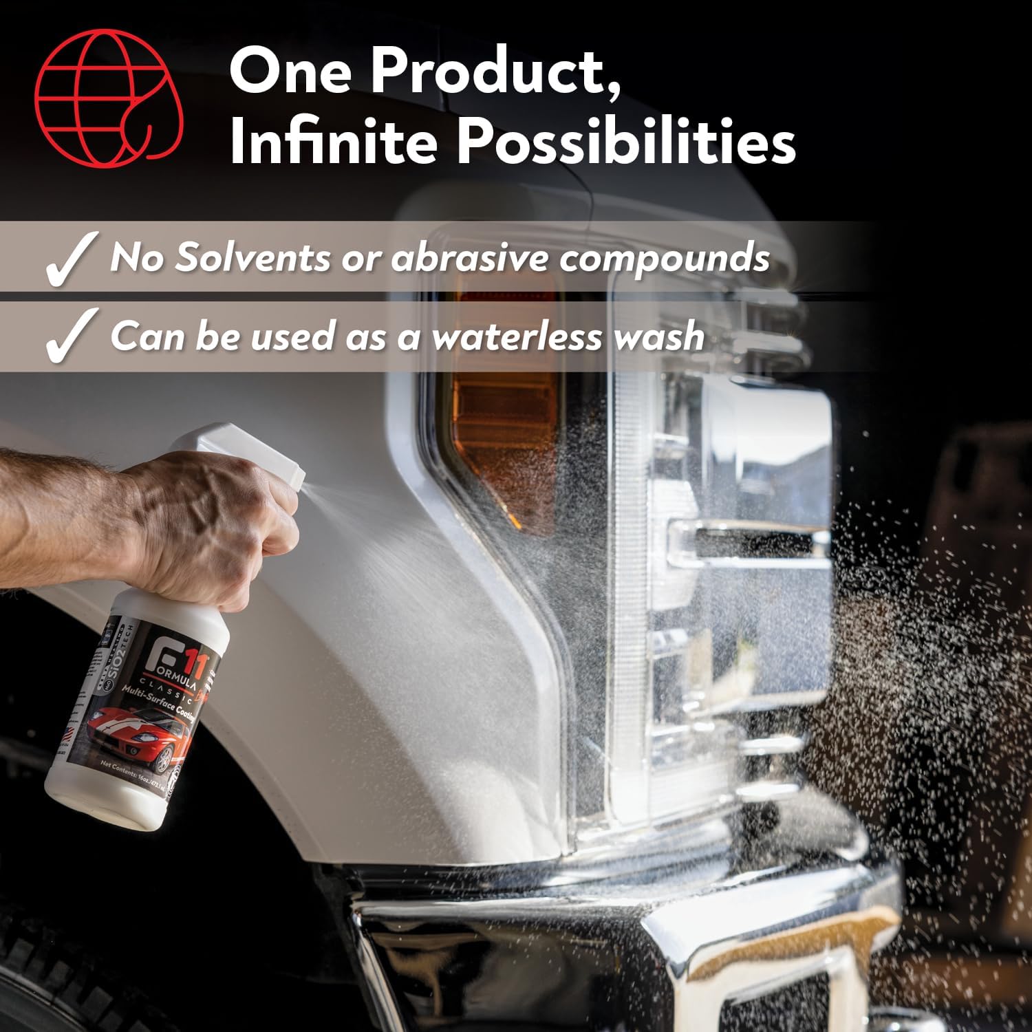 • Water-Based: Car wax alternative spray contains no solvents or abrasive compounds. With a water-based formula, F11 replaces waxes, polishers, sealers, and even washes