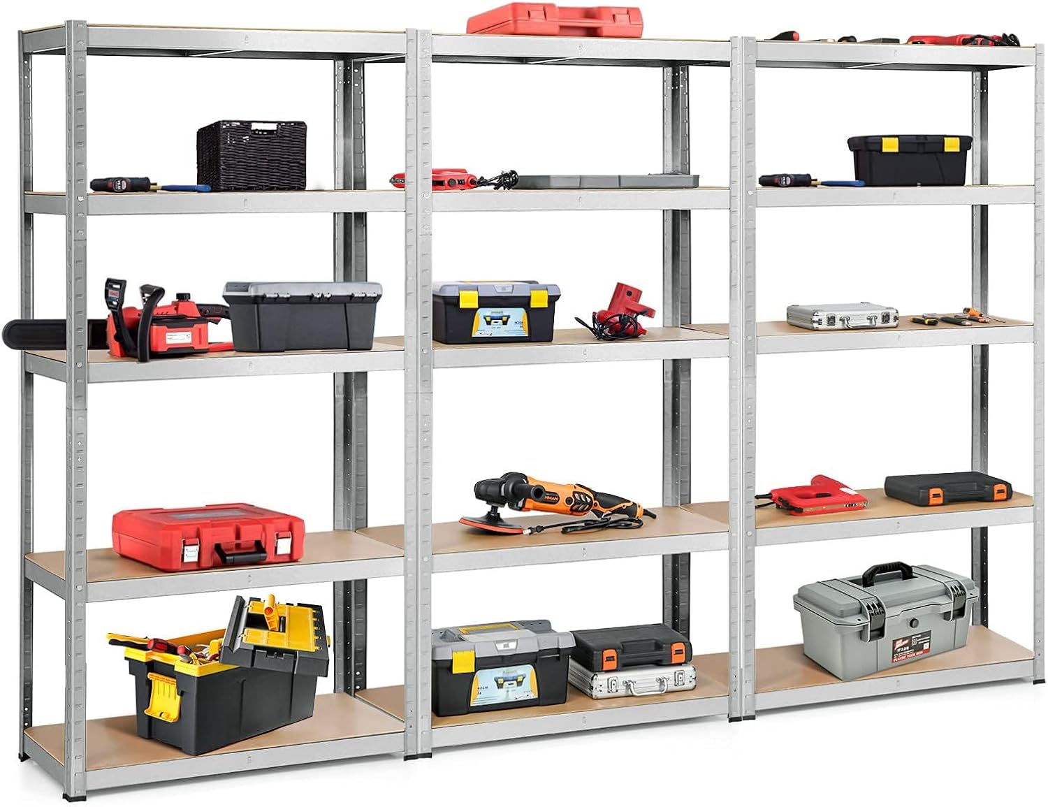 ERGOMASTER 5 Tiers Steel Shelves for Storage Heavy Duty Garage Organization Utility Shelf Rack for Books, Kitchenware and Tools 72 x 16 x 108 in (Set of 3,Silver)
