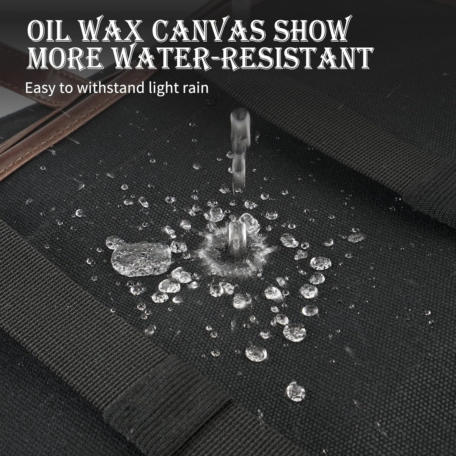 - 🏍️【More Secure】: In order to improve the bearing strength of the saddle piece, this motorcycle luggage bags designed the waxed canvas saddle piece and additional straps to increase the stability. NOTE!!!: (1)Please do not fill items more than the limited capacity (15L per bag). (2)The tool saddle bags and the exhaust pipe should be kept more than 4 inch to avoid too close to be burned through.