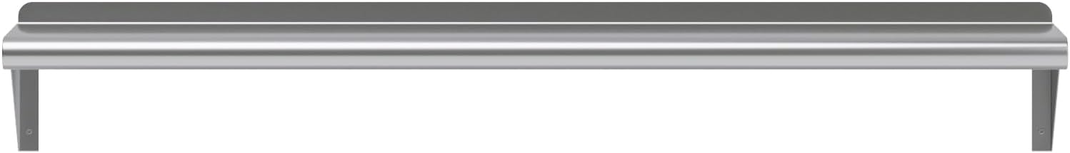 - 8 in. x 48 in. Stainless Steel Wall Shelf with 6 in. High Mounting Brackets. This heavy-duty multifunctional stainless wall shelf is made with 18 gauge stainless steel and can hold up to 185 Lbs of weight. The design features a 1 in. backsplash and bullnose edge. It's made with durable welded corners and support brackets.