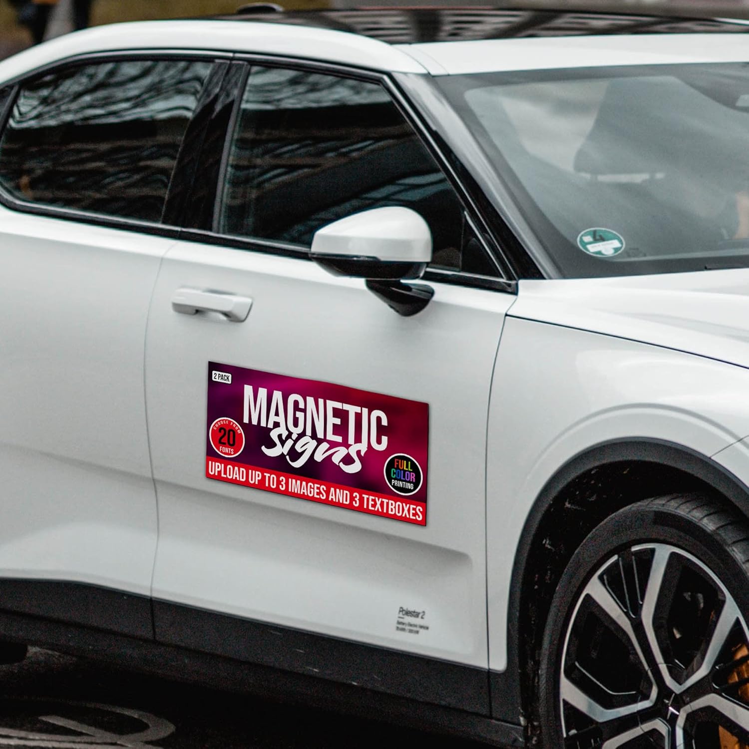 - CUSTOM CAR MAGNET - Promote your business on the go with our 12"x24" custom car magnets. Personalize with your logo, text, or design. These magnetic signs are great for branding cars, trucks, trailers, and storefront doors.