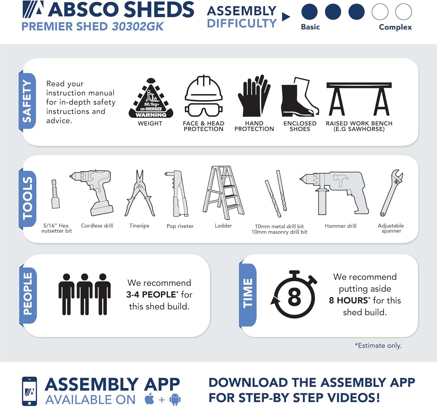 Absco Premier Storage Sheds, 10'x10' Metal Garage, DIY Backyard Shed, Utility Tool Storage, Weather & Wind Resistant Aluminum Panels & Steel Frame, Maintenance-Free, 12 Year Warranty, Monument Gray
