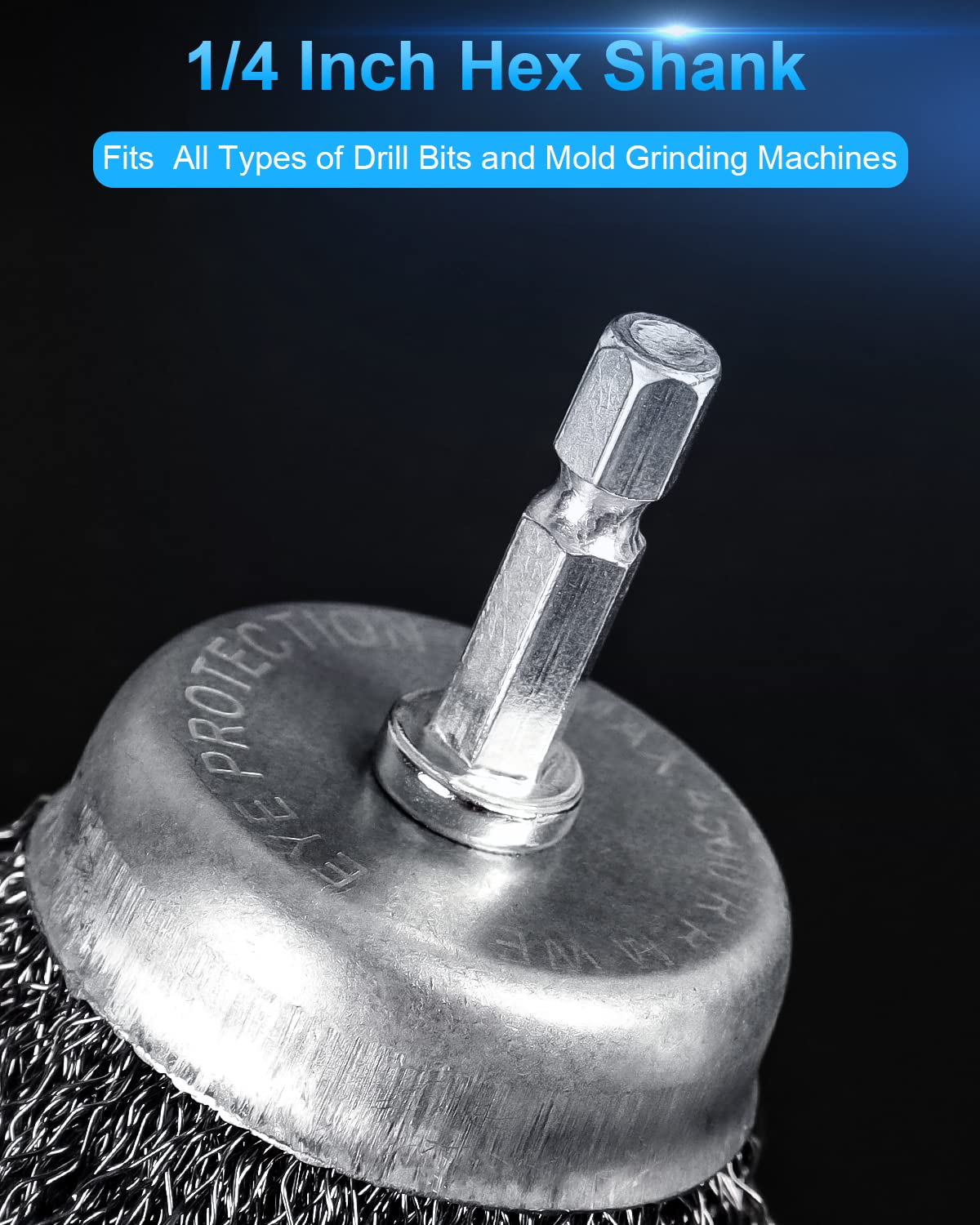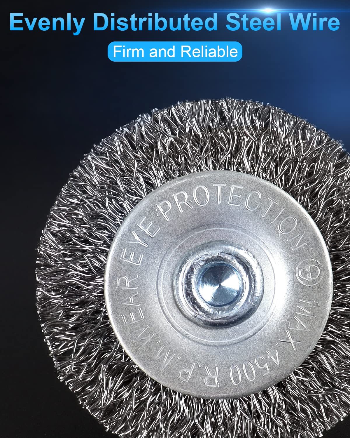 - 15 Pack Wire Brush Set: This package includes: 5 pcs carbon steel cup brush, 5 pcs wheel brush, 5 pcs pen brush with 1/4 inch hex shank. Hardened steel wire long maximum 4500 RPM.