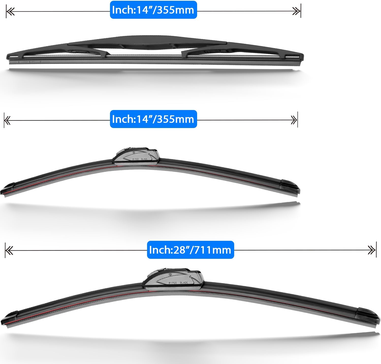 - {FITMENT}: Replacement for 2009 2010 2011 2012 2013 2014 2015 2016 2017 2018 2019 2020 Honda Fit 28inch + 14inch front with 14inch rear windshield wiper blades.
