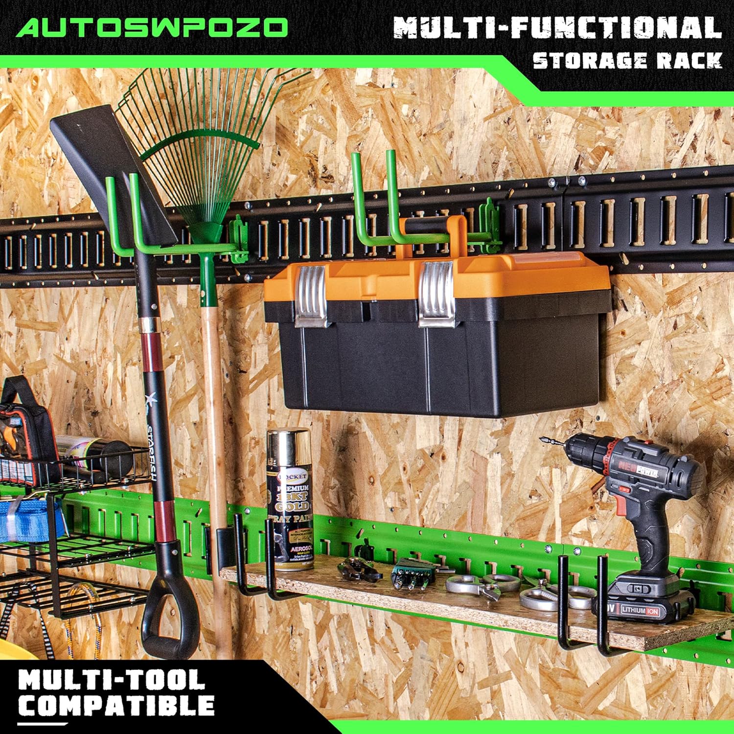 - MULTI-TOOL COMPATIBLE: Store multiple long-handled tools, such as rakes, shovels, brooms, cargo bars, garden tools and other tools. Can also hang ladders, hoses, ropes, bike, extension cords and more. Suitable for E-track tie down rails or singles