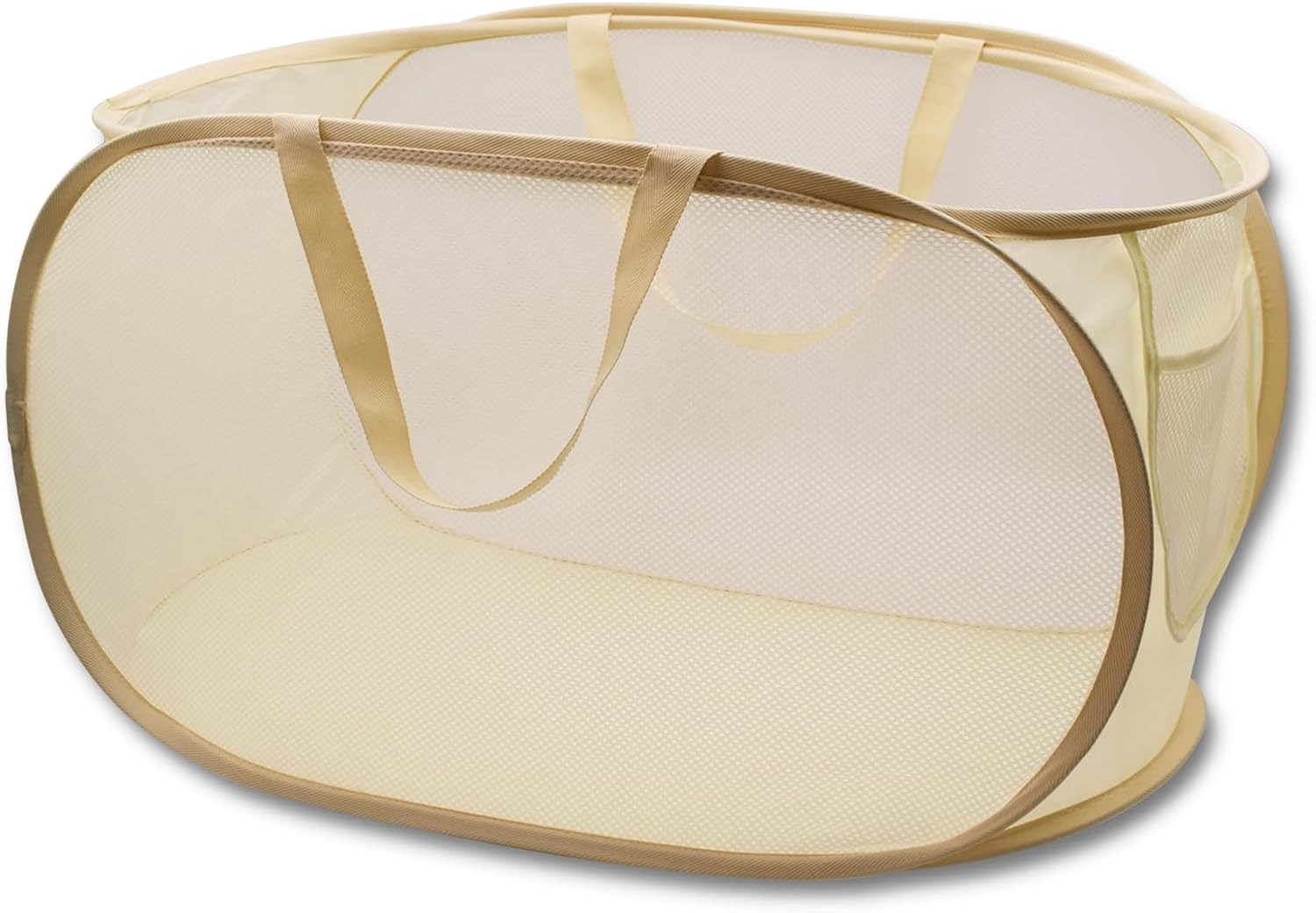 HONOMA Sturdy Mesh Laundry Hamper Basket Bag,Pop up Basket with Side Pocket for Laundry Room, Bathroom, Kids Room, College Dorm or Travel (Pop Horizontal, Beige)