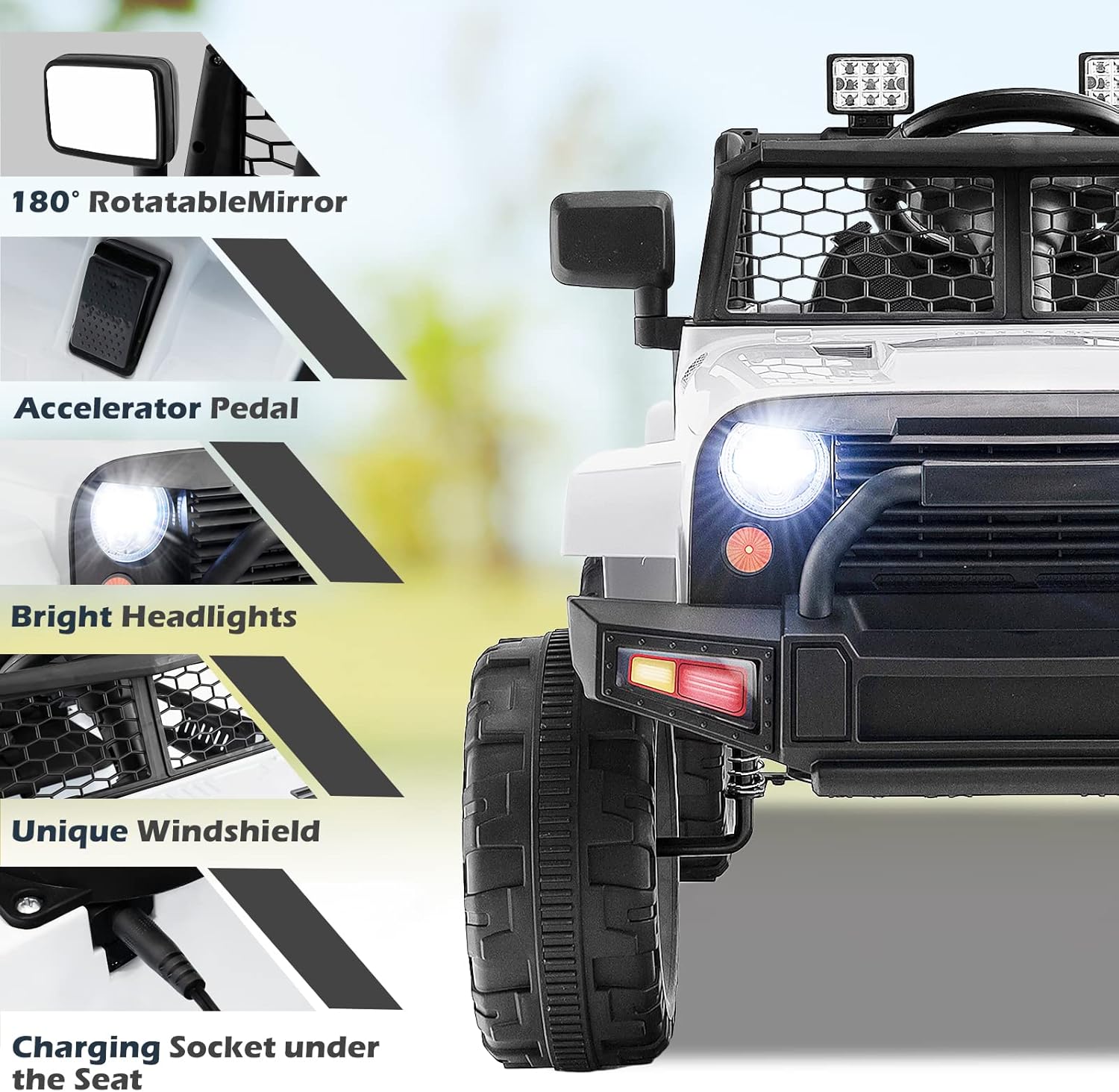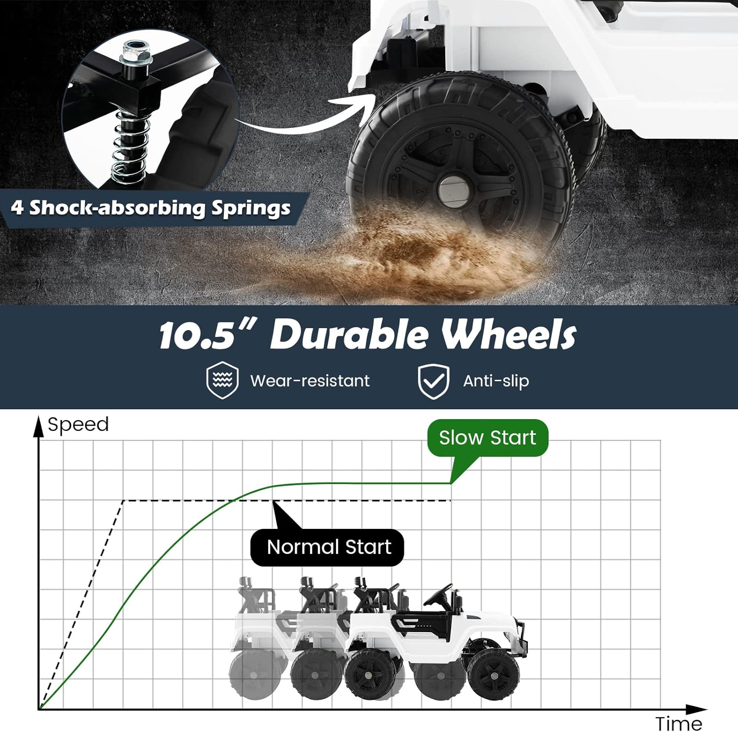Costzon Ride on Car, 12V Battery Powered Truck Vehicle with Remote Control, Spring Suspension, Headlights, Music, Horn, MP3, USB & Aux Port, Gift for Boys Girls, Electric Car for Kids (White)