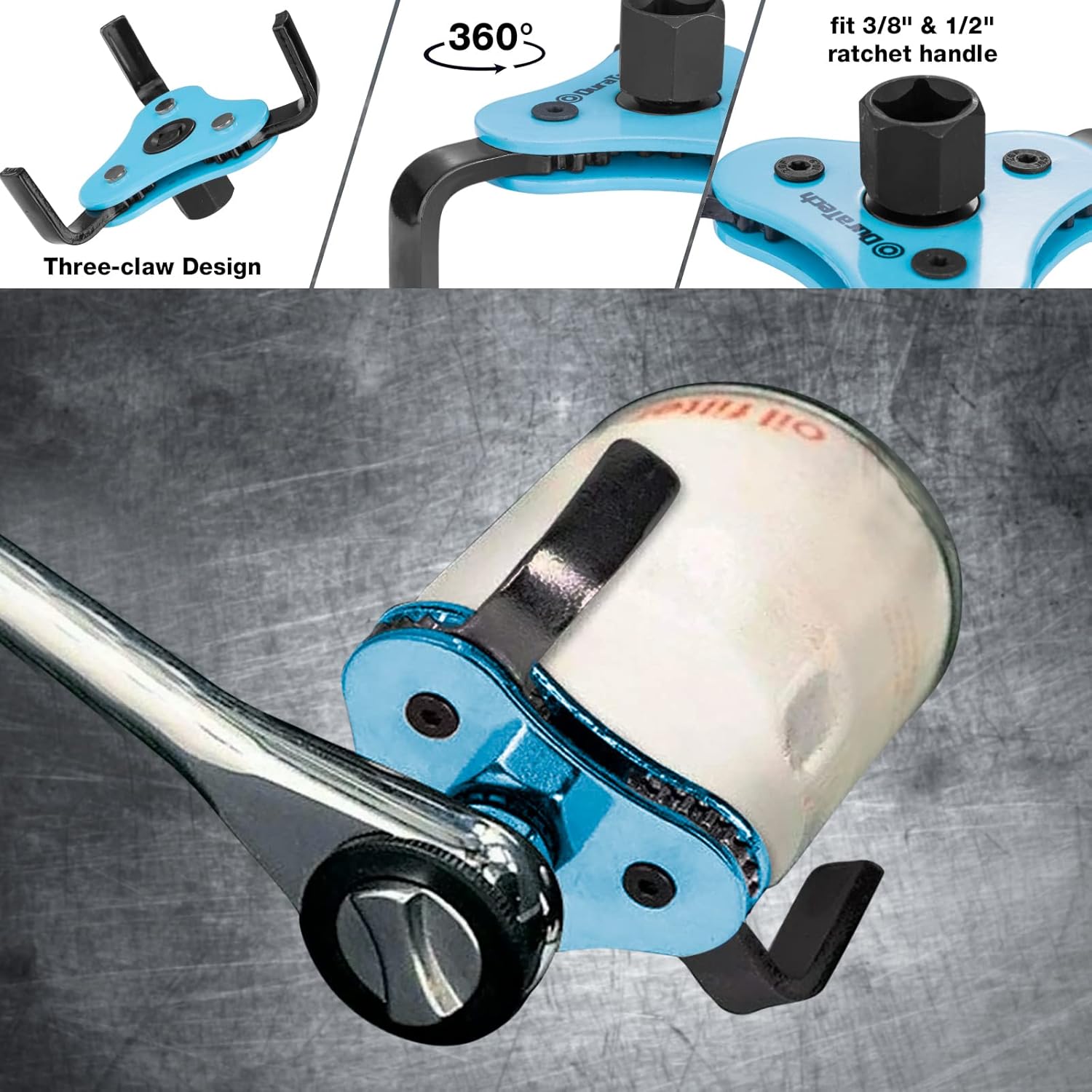 - Universal Adjustable Oil Filter Wrench: Designed to be an easier way to remove oil filters, comes with a useful adapter to connect with any 3/8 ″ or 1/2 ″ drive ratchet. You will need this effective tool