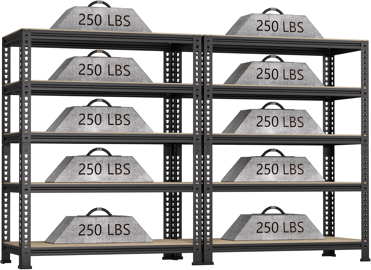 5-Shelf Heavy Duty Shelving - Adjustable Garage Storage Shelves, Metal Utility Storage Racks for Warehouse Pantry Basement Kitchen, Garage Organizers Shef Unit, Black, Packs of 2