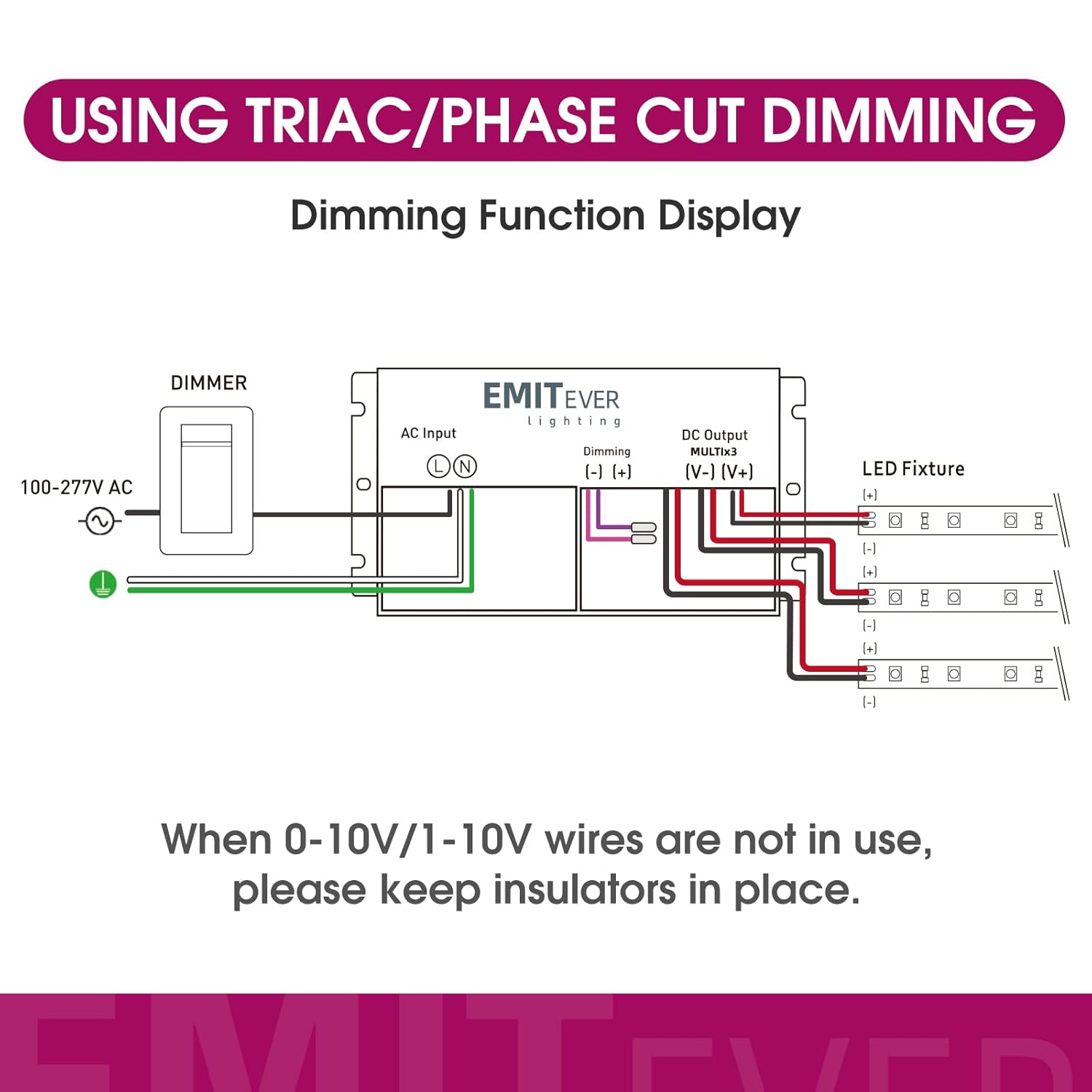- 5-in-1 Forward and Reverse Phase Dimming: ELV / MLV / TRIAC / 0-10V / 1-10V / 10V PWM / Potentiometer.Versatile driver for most high-performance dimming applications: The Adaptive Pro 5-in-1 dimmable Class 2 drivers are designed to operate with any standard MLV / ELV / Incandescent TRIAC (forward phase) dimmer switch or can also be used with secondary side controls systems. Used commonly with Lutron and Leviton receivers and controls for secondary side dimming.