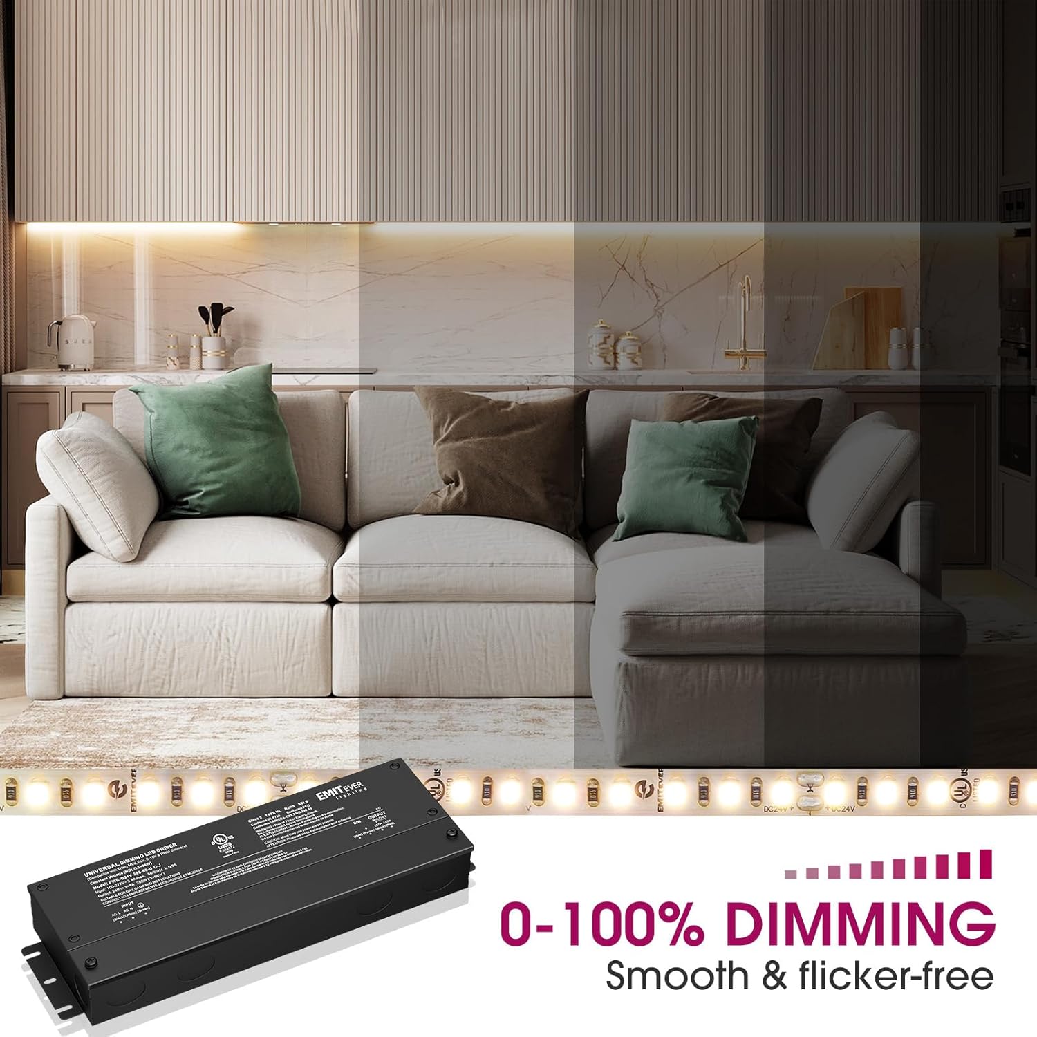 - Premium Commercial Construction: The 288W dimmable led driver is 3-Channels 24V dimmable power supply,maximum power per channels is 96WEncased in a low profile aluminum enclosure that includes knockouts for easy installation in any low voltage application.