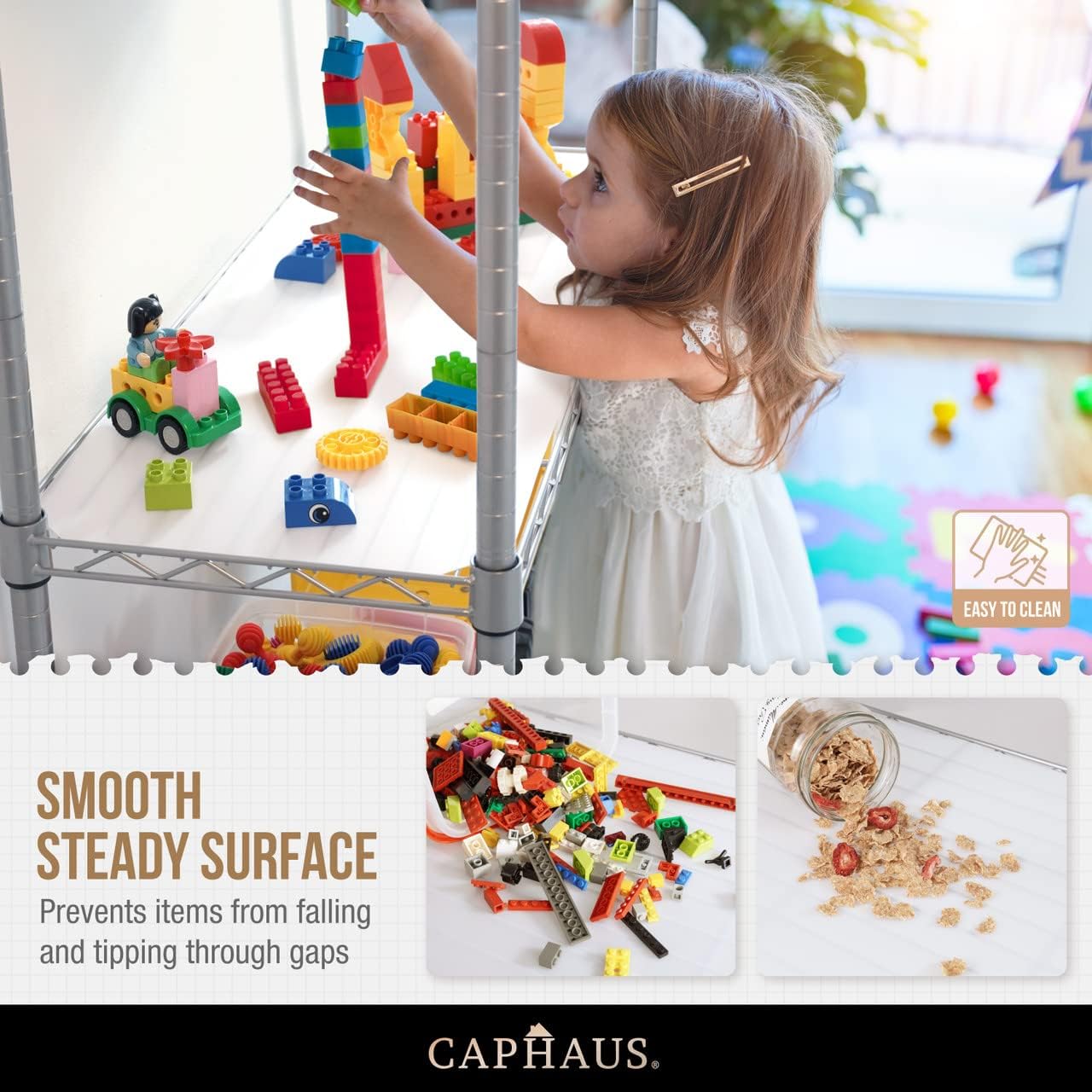 - 🔨 Adjustability For Different Storage Purpose – With the height adjustable design, you can adjust each height of the shelves to fit the item you storage. It offers a customized unit best suited for your own needs. Just snap the clip on and move it up or down where you want it and it will click into the groove, it is painless to assemble it!