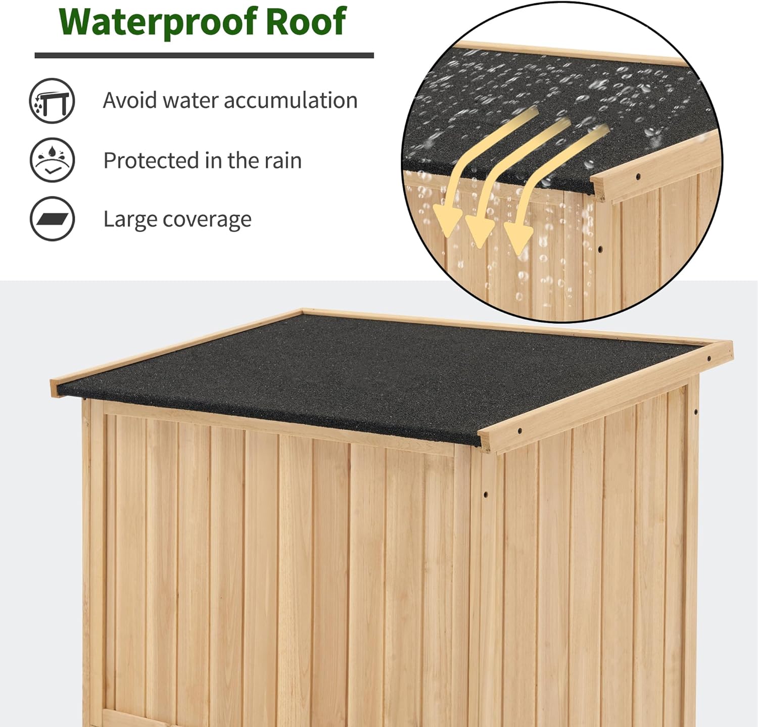 - Waterproof Roof: The sloping roof is covered with asphalt, it's not only waterproof but also void water accumulation.