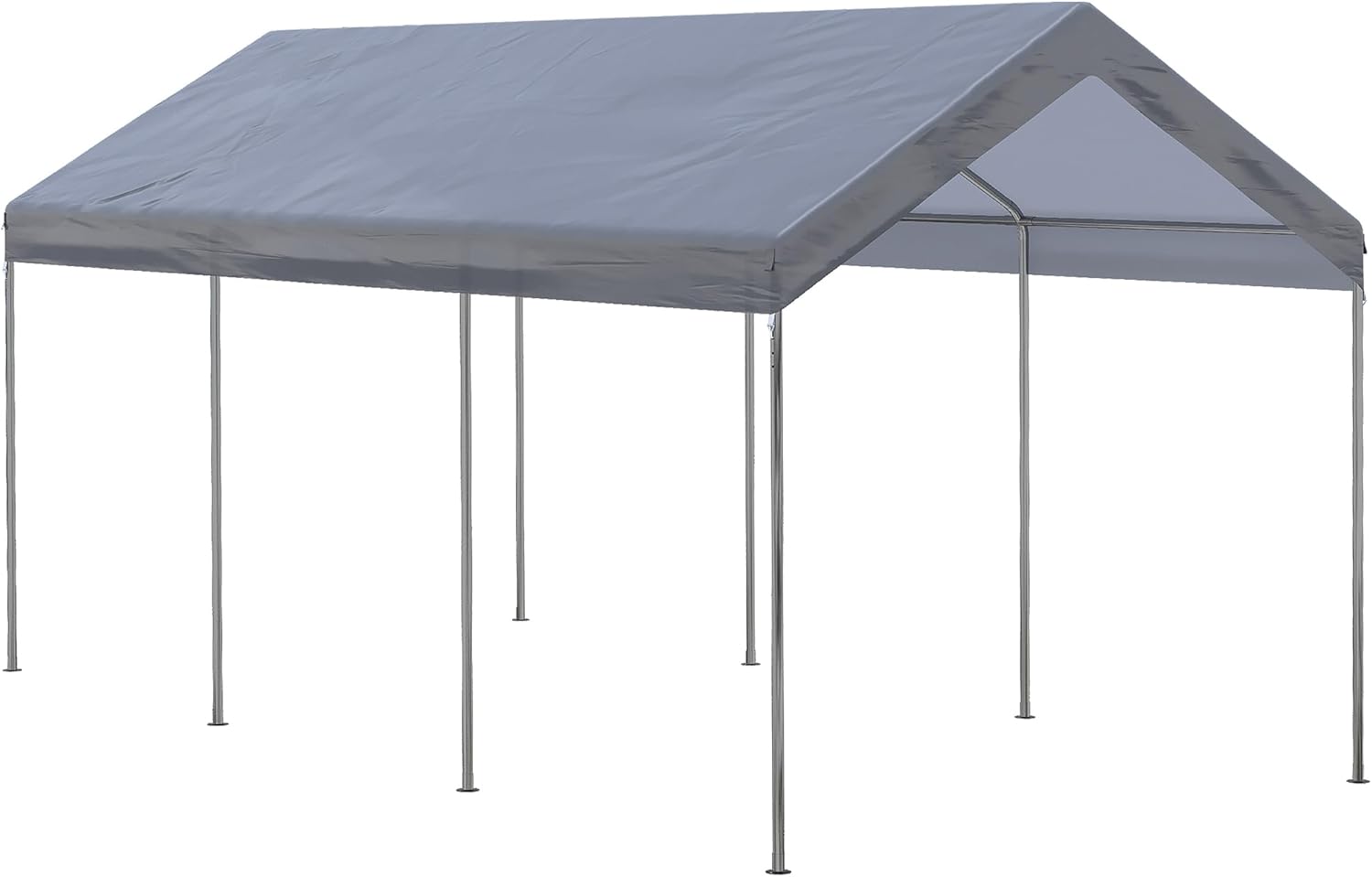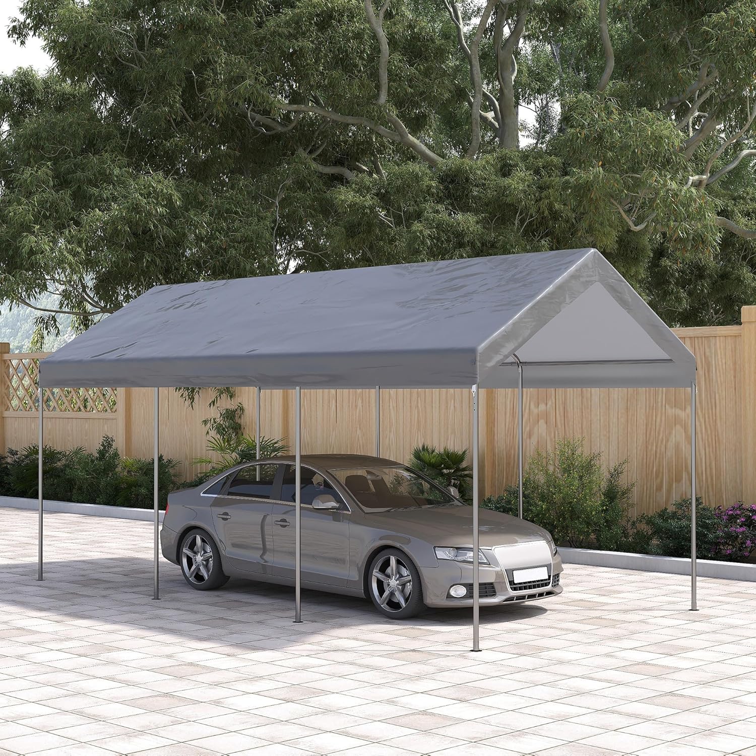 - Easy Canopy Garage: Our 20' x 10' metal carport is an open-design canopy with a heavy-duty tarp that you can drive right up to. Resistant to sun damage, our canopy tent car port can keep your car, tools, or other belongings beneath it in an excellent condition compared to being out in the open.
