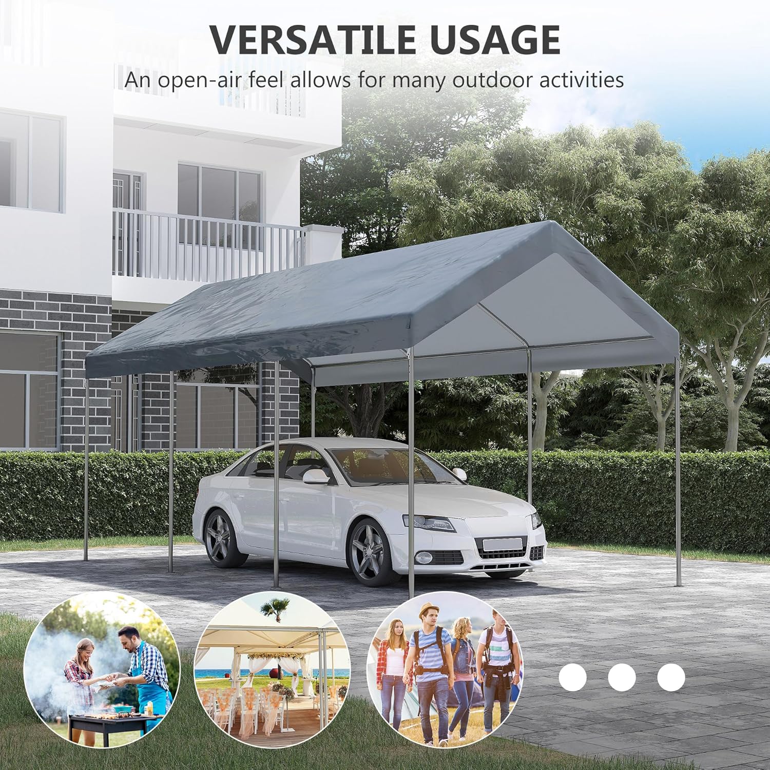 Outsunny 10' x 20' Party Tent and Carport, Height Adjustable Portable Garage, Outdoor Canopy Tent 8 Legs Without Sidewalls for Car, Truck, Boat, Motorcycle, Bike, Garden Tools, Gray