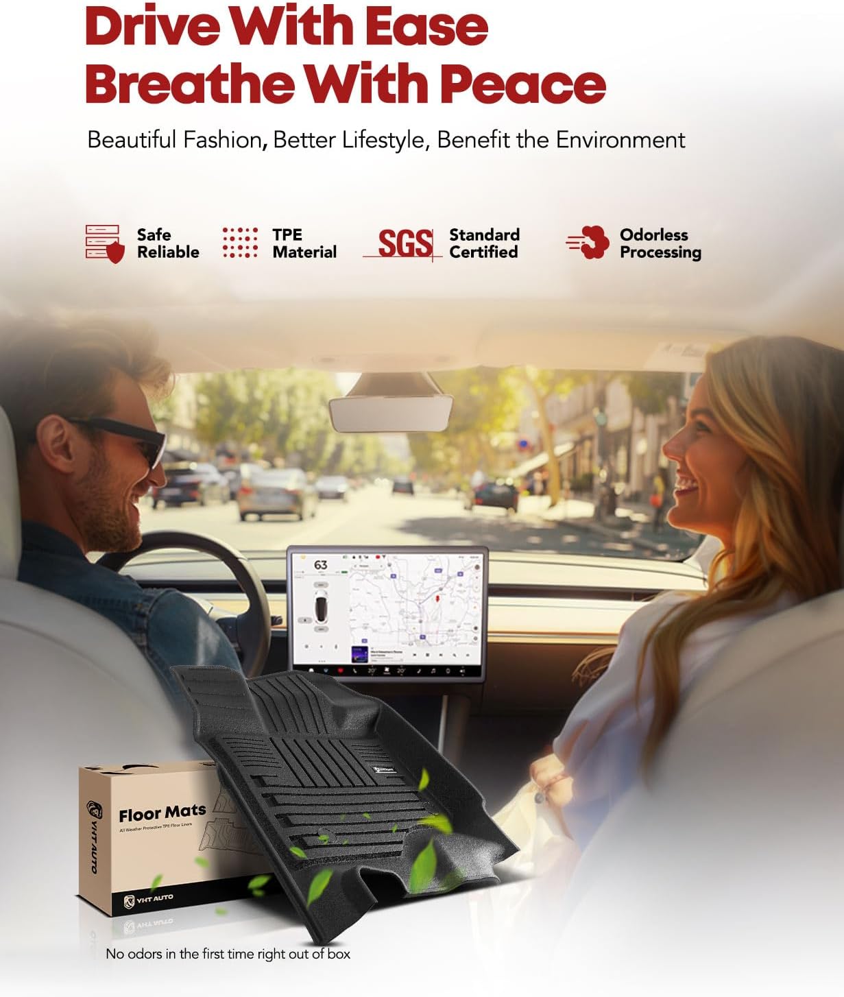 - Odorless floor liners: The floor mat is made of TPE material, which smells odorless and soft touch. Injection molding ensures precision, the anti-skid design on the back can prevent unwanted movement during driving