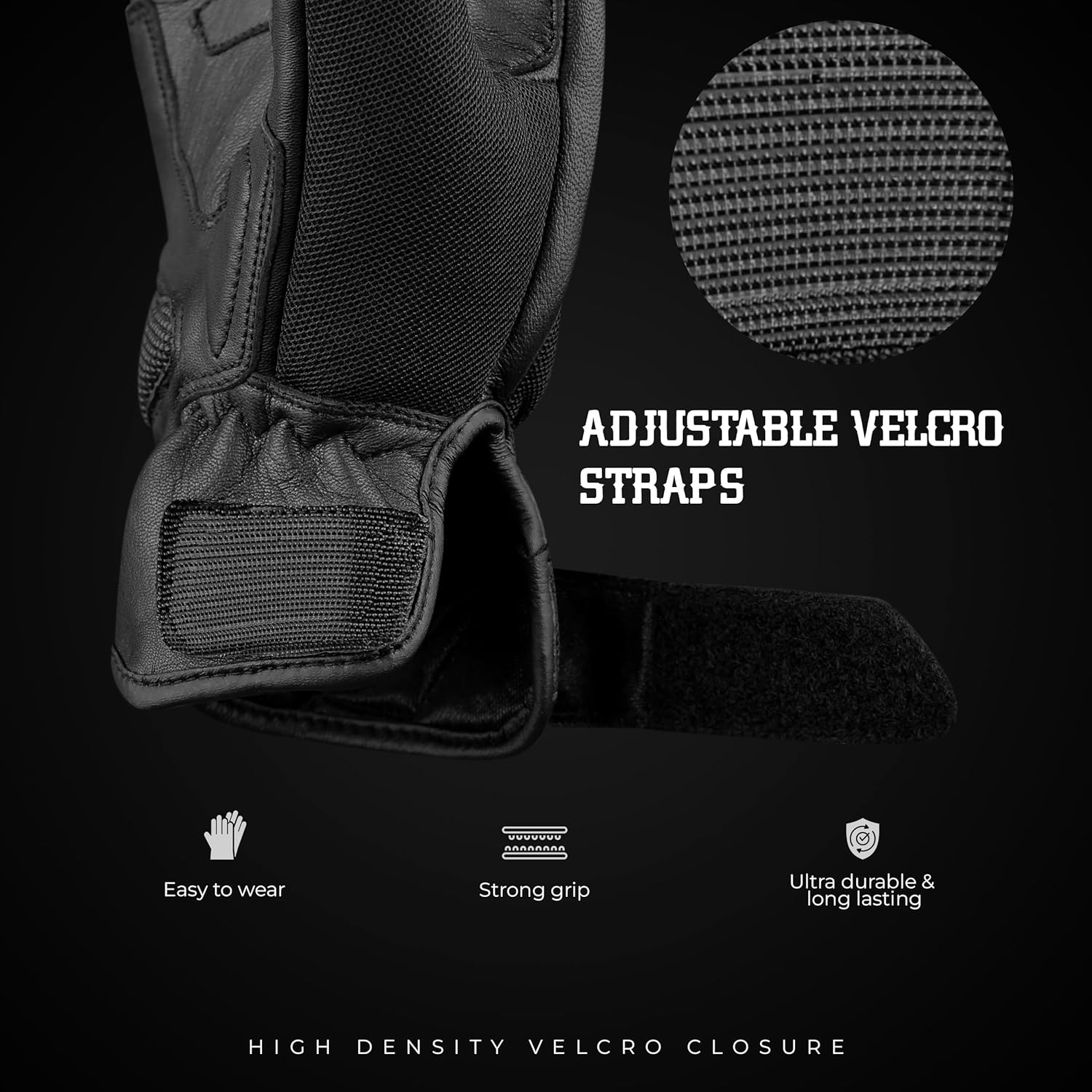 - Other Features: Exclusive Logo Design, adjustable Velcro straps, advanced finger joint protection, breathable and comfortable, fingers stretch panels, double stitched, these gloves promote increased airflow, keeping your hands cool and sweat-free, even during extended rides. Outdoor sports leather motorcycle gloves for men prioritize safety, comfort, and style for an unparalleled riding experience.
