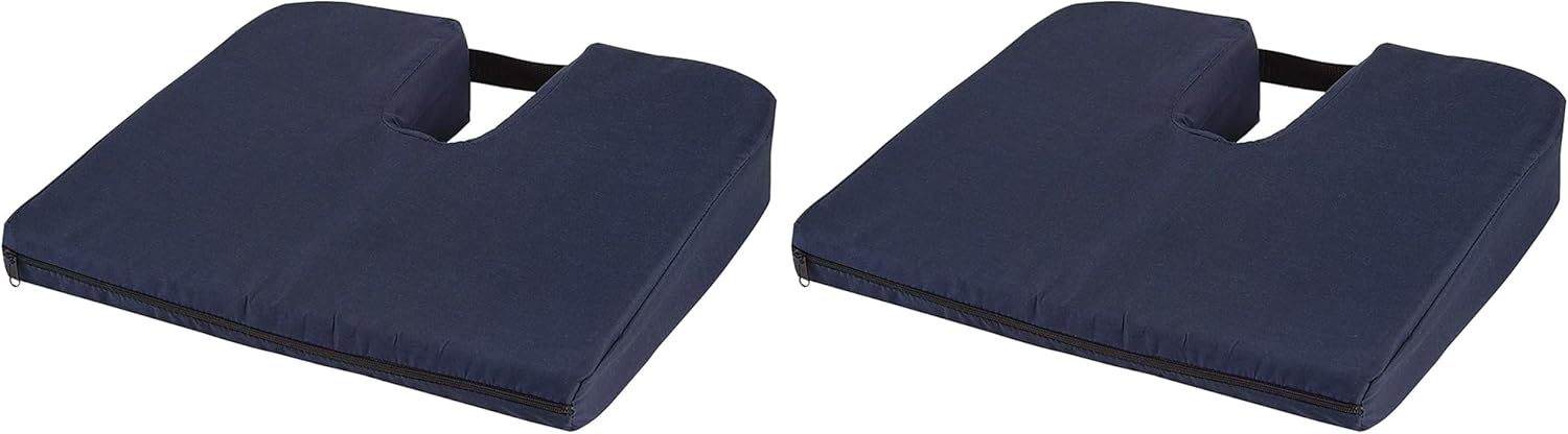 DMI Gradual Slope Seat Cushion for Coccyx, Sciatica and Tailbone Pain Used with Dining Room Chairs, Desk Chairs, Car Seats or Wheelchair Cushions, Machine Washable-Cover, 15 Inch, Navy (Pack of 2)