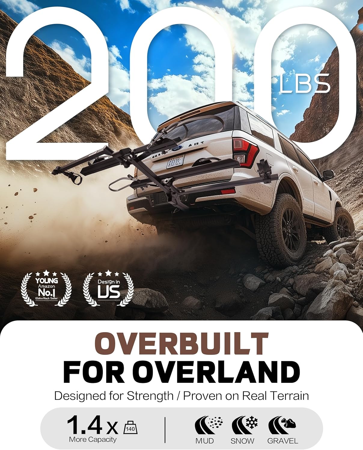 Young E-Bike Rack Hitch Mount Platform Style for Cars Trucks SUVs Minivans RV, fits E-Bike with Up to 5-inch Fat Tire, 200 lbs Capacity, Anti-falloff 360° Swirl Structure