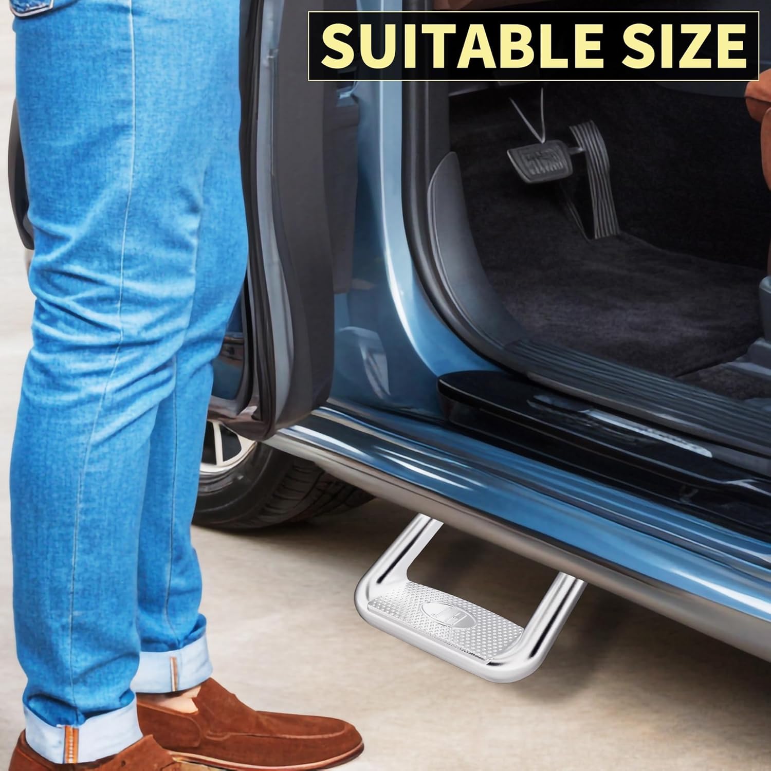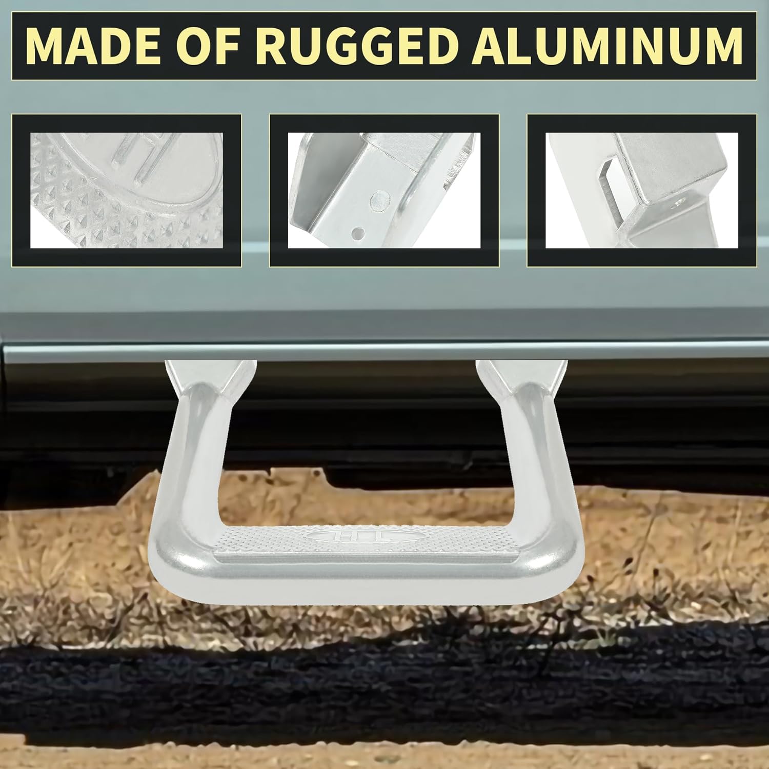 - Superior Quality: Made of rugged aluminum, It has superb durability, not easily damaged, and can withstand extreme weather or harsh use environments. The side step uses a Electrophoresis finish to provide strong surface protection, while the surface covered with dot bumps effectively avoids slipping. This side step allows you to get in and out of a truck or Suv safely and easily