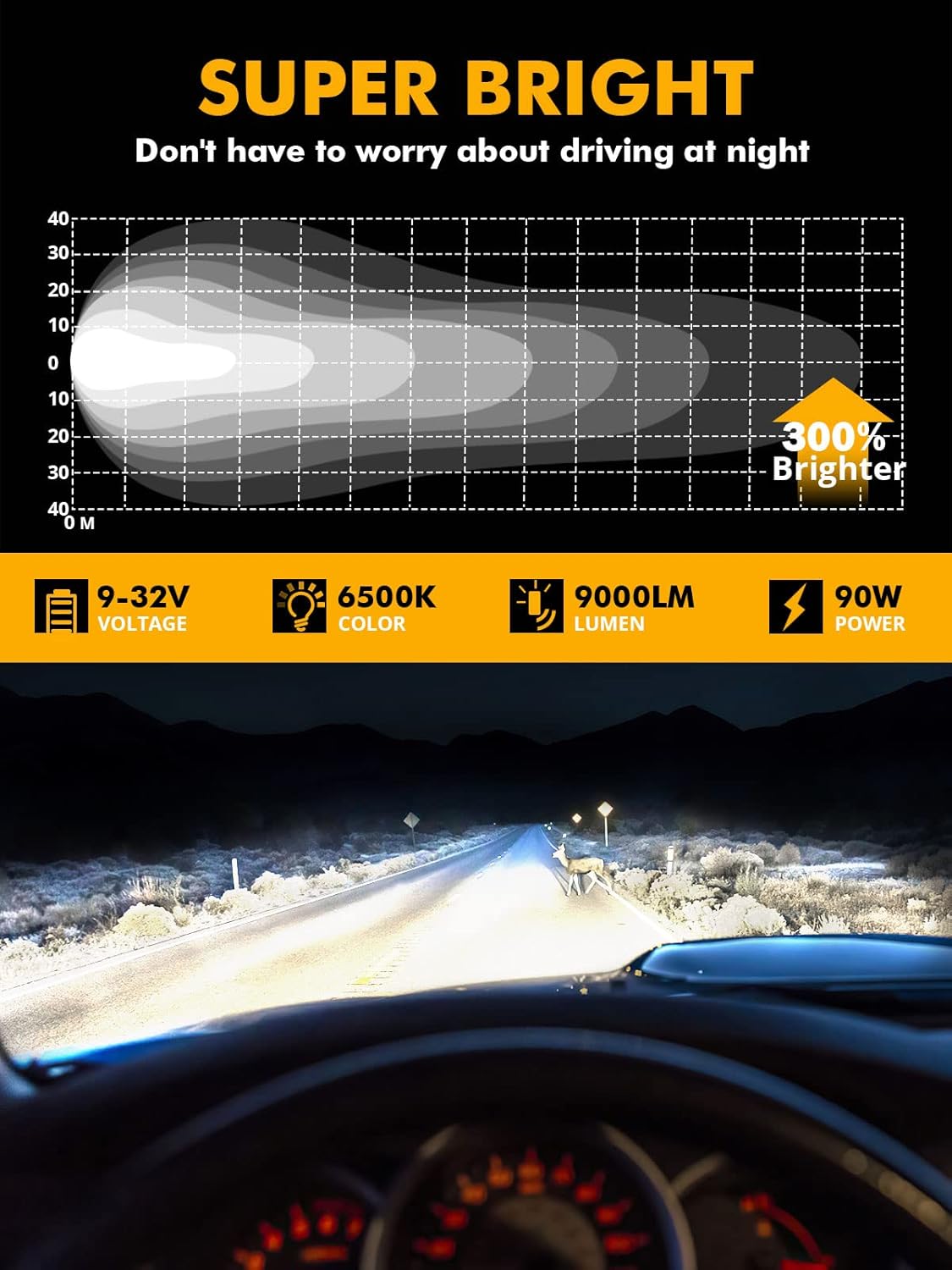 - 【LAST OVER 50,000 HOURS】Made of thickened 6063 diecast aluminum heat sinks, over sized heat-sink and breathing vent make lights fast running cooler. Even in harsh driving condition, it can still maintain an impressive 50,000 hour average life span.