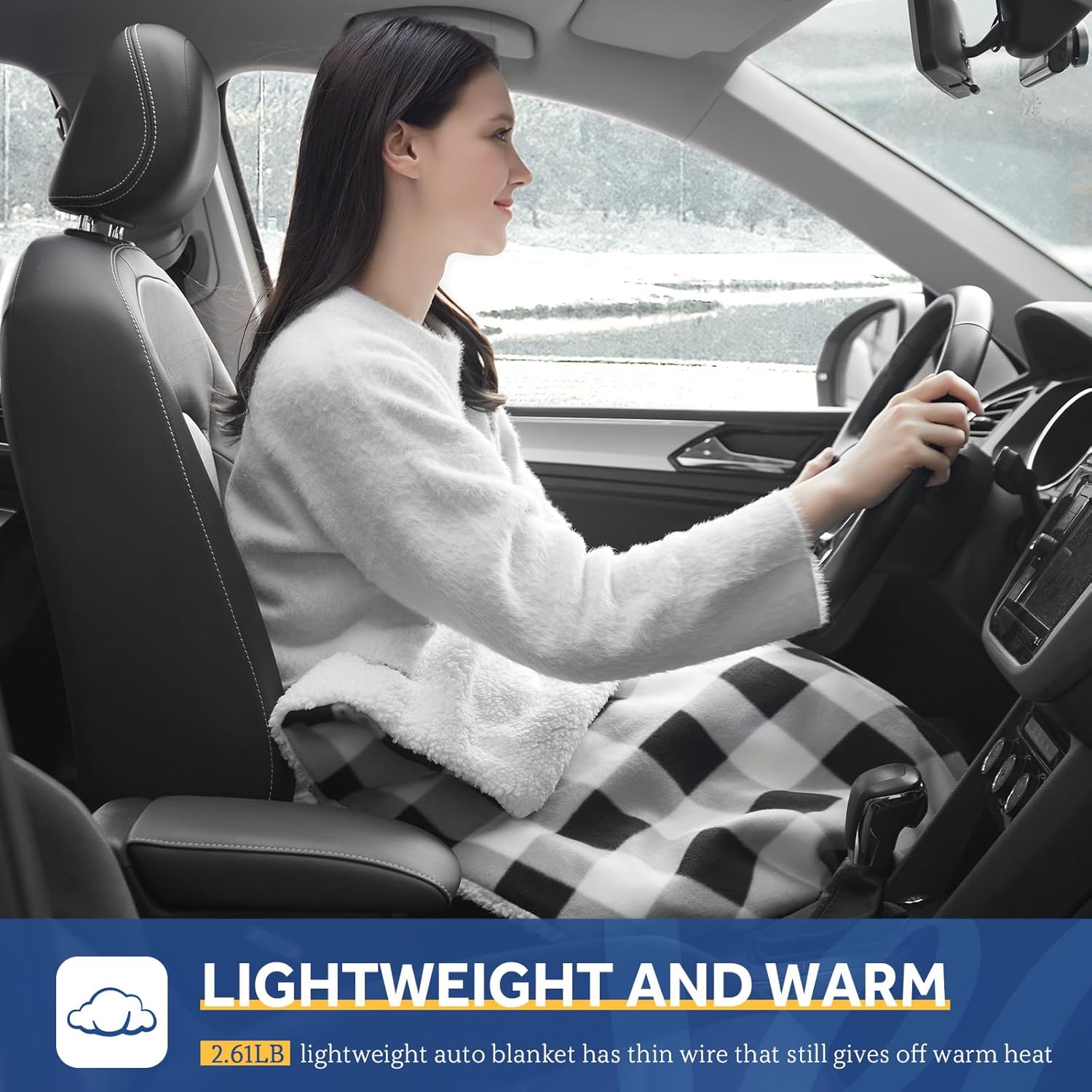 - 【Energy-efficient】 Portable heated blanket with 3 heating levels & 4 hours auto off, you can choose the temperature according to your needs. Compared to turning on the entire vehicle's heating system, a car heating blanket only uses a small amount of electricity, thus reducing energy consumption.