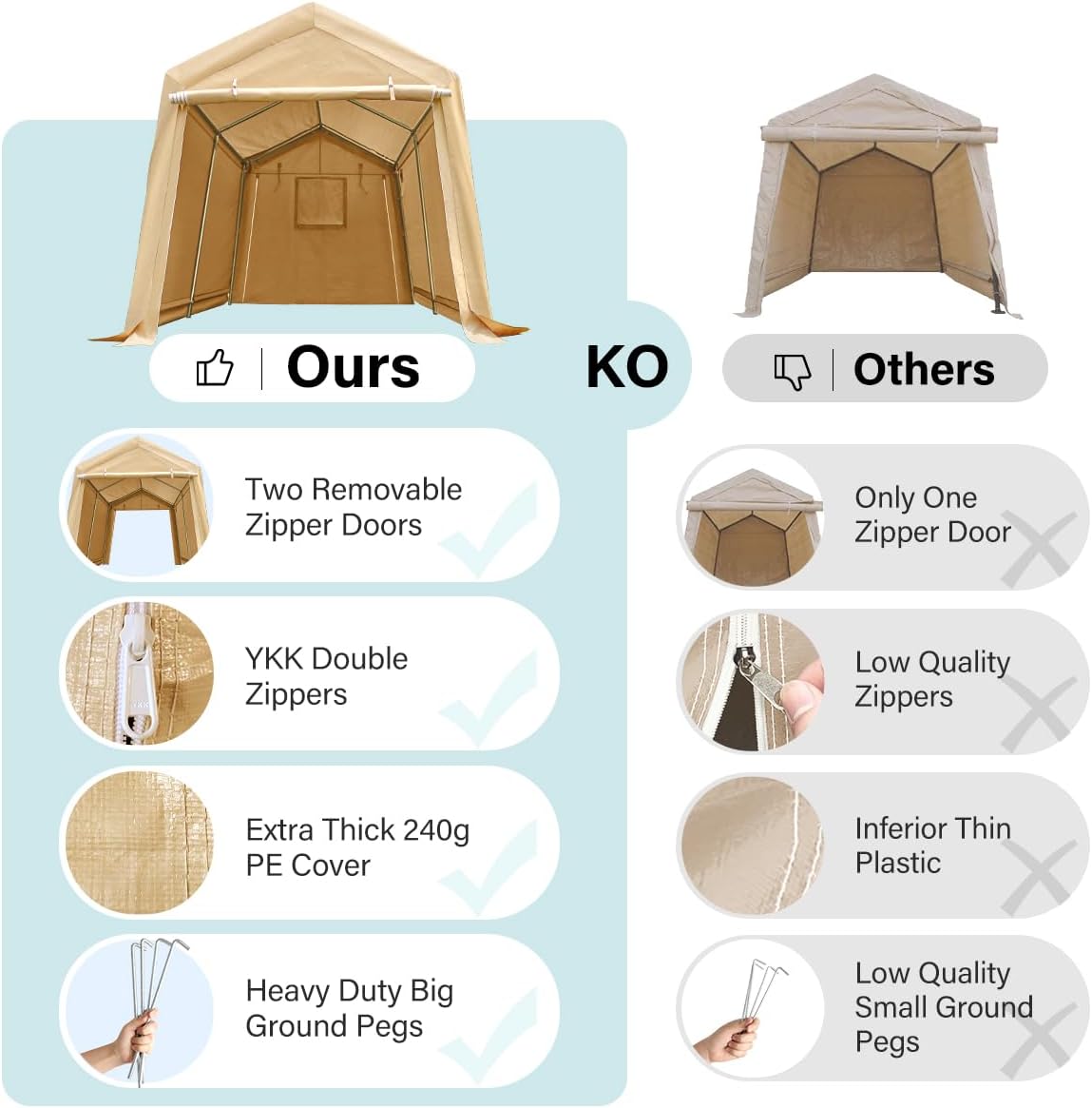 - 【Various Use】✔The portable storage shelter can be a motorcycle storage shelter, ATV storage shed, bike storage tent, or small vehicle garage shelter. It is also suitable for small lawnmowers, firewood or any other gardening tools.