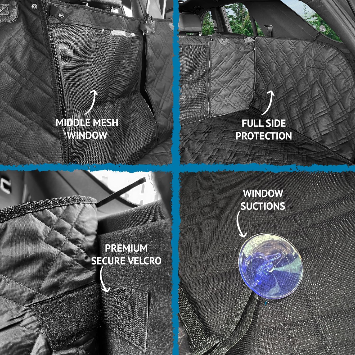 - Waterproof Layers: Ensure pet accidents or any spilled liquids from staining and absorbing into your cargo liner or seats. Each thick layer are made ultra-waterproof that resist any spills. For a quick cleanup, you can wipe the cover down with a damp cloth, or throw it in the washing machine for bigger messes.