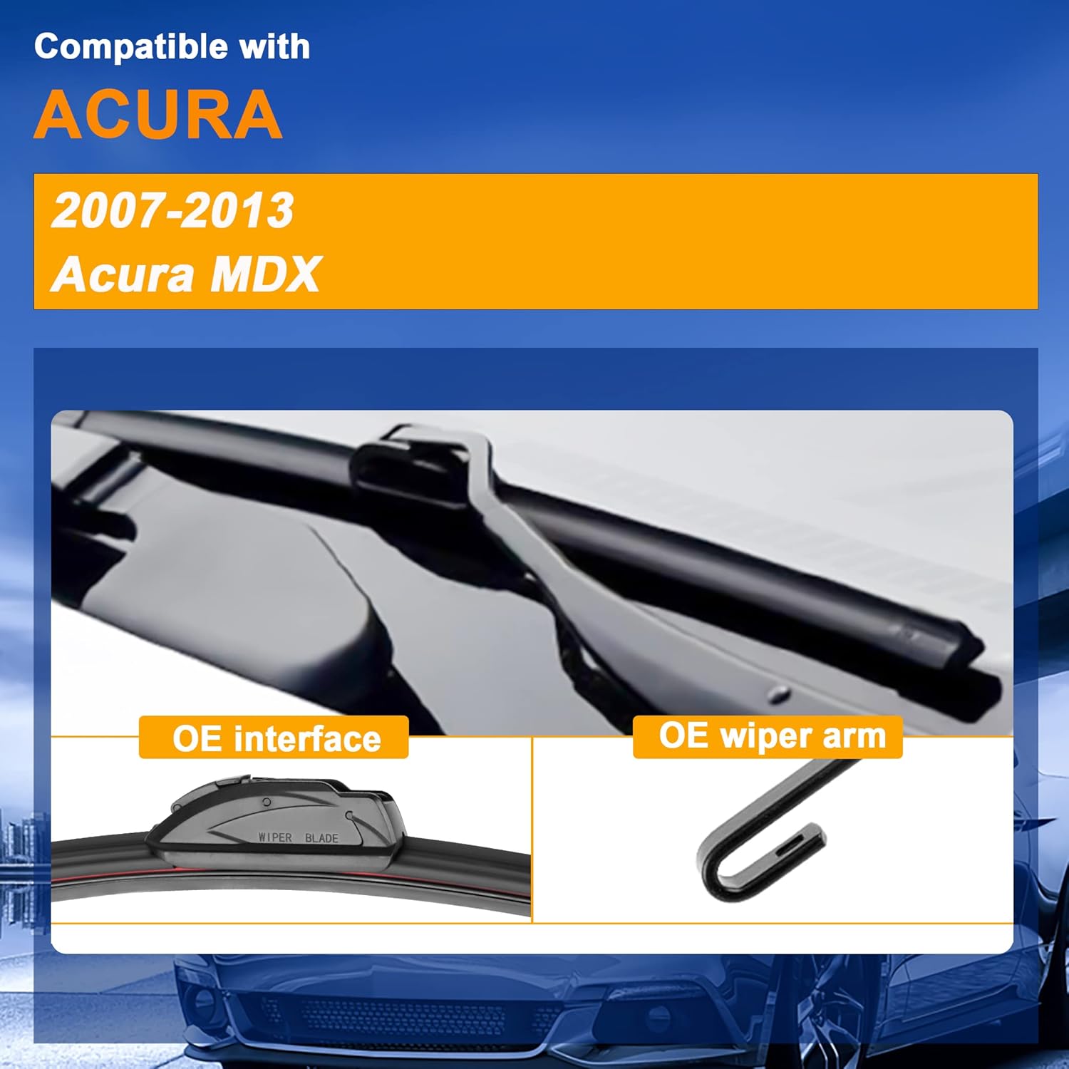 - {FITMENT}: Replacement for 2007 2008 2009 2010 2011 2012 2013 Acura MDX front rear windshield wiper blades.