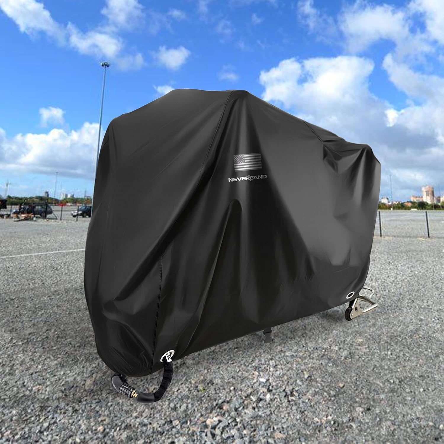 - Reflective Patriotism: Our cover for motorcycle features a striking reflective American flag logo, ensuring maximum visibility in low-light situations. Ride with pride, knowing that you and your bike are easily spotted by other motorists