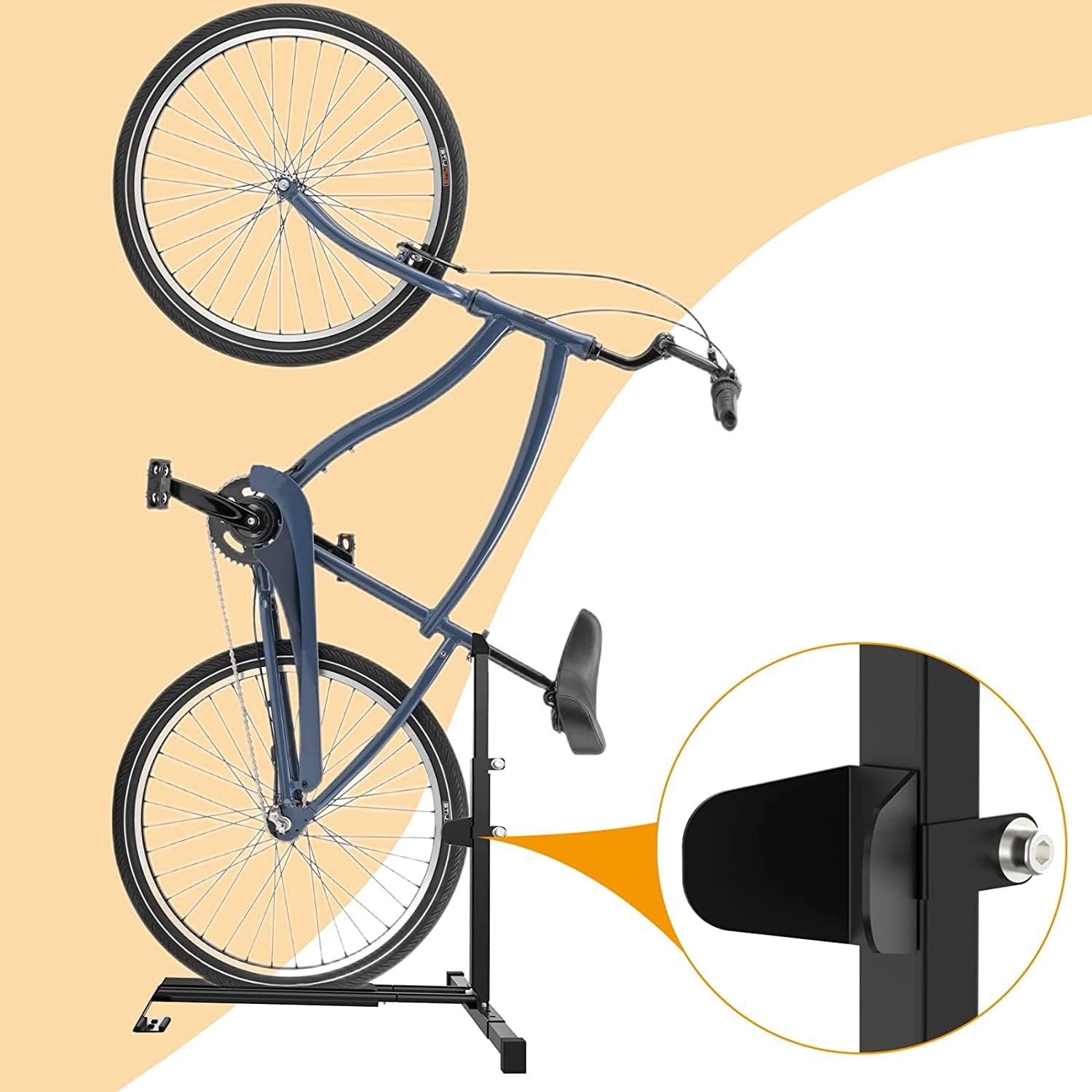 - EASY ASSEMBLY UPRIGHT DESIGN-means no more struggling to lift and hang heavy bikes to make room in your house. Adjusts to various heights, is completely portable, and is fully adjustable