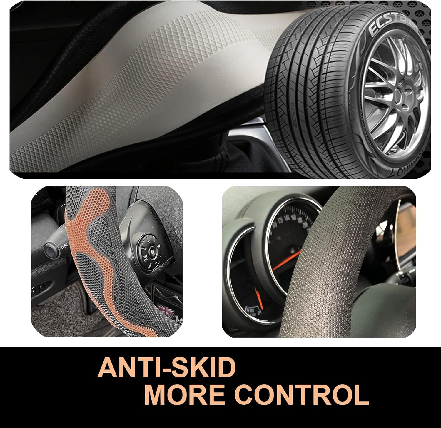 - Built to Last: Crafted with a solid rubber inner circle, textured microleather leather, and a 3D honeycomb silicone grip, this cover boasts a unique material combination that ensures exceptional durability. The silicone grip effectively relieving sweaty hands under hot weather. Enjoy a long-lasting and comfortable grip with PINCTROT car steering wheel cover.