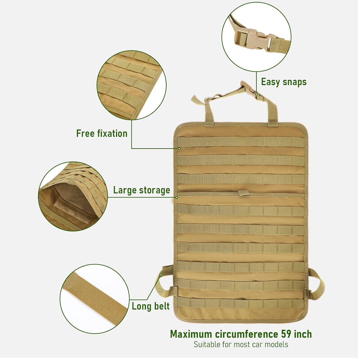 - 🚗 Multifunctional Storage - Design with 5 Molle bags on the back to help you store tactical gear & personal items and save space. Difference sizes of Molle bags help you classify your items so easily.you can set the Tactical Seat Back Organizer according to your own habits and need.
