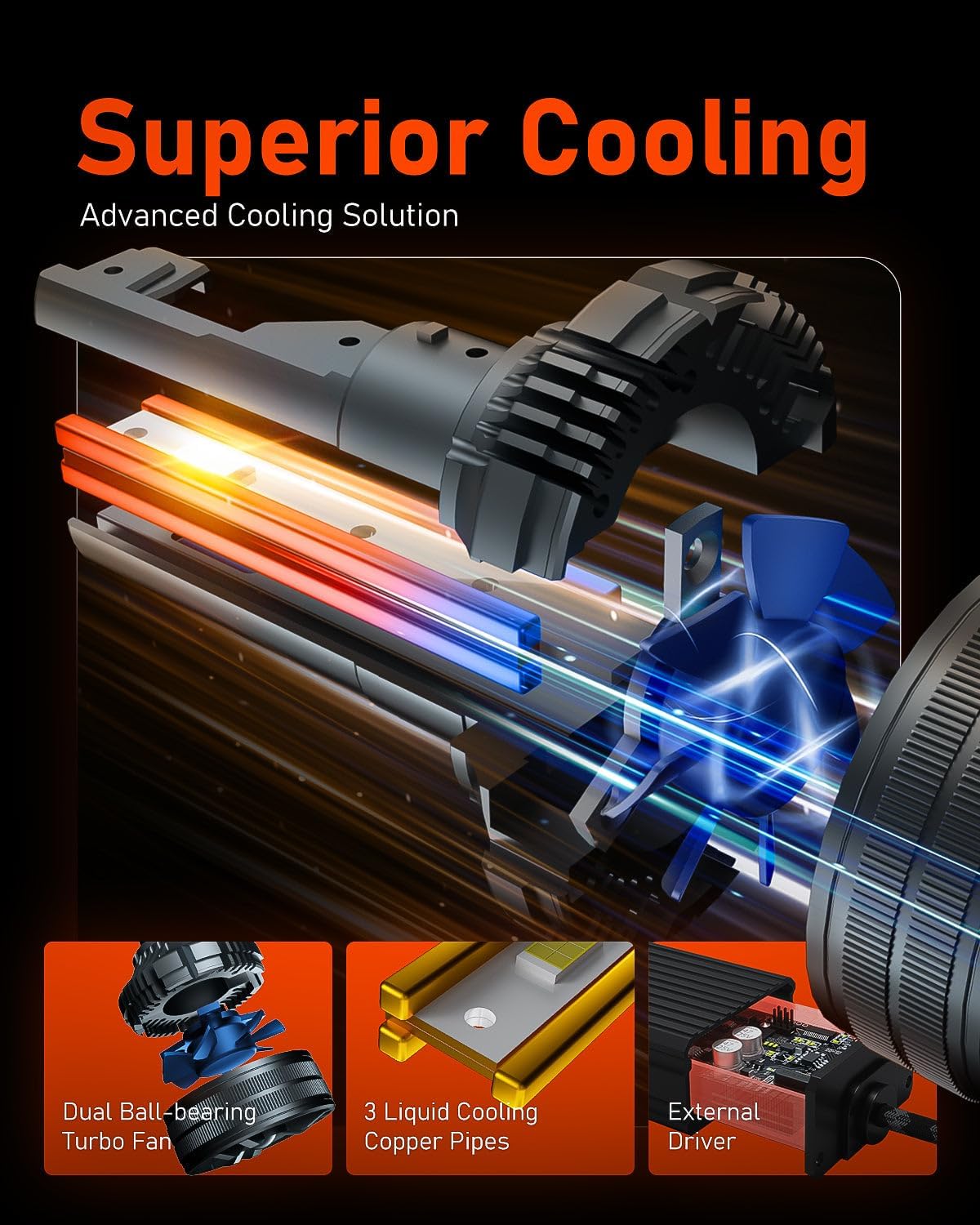 LUXSTER | Punisher H4 9003 LED Bulbs, 40000LM Ultra Bright, Triple Copper Pipes Cooling Tech(Unique), Plug-N-Play Installation, 6000K Pure White Foglight, IP68 Waterproof, Pack of 2