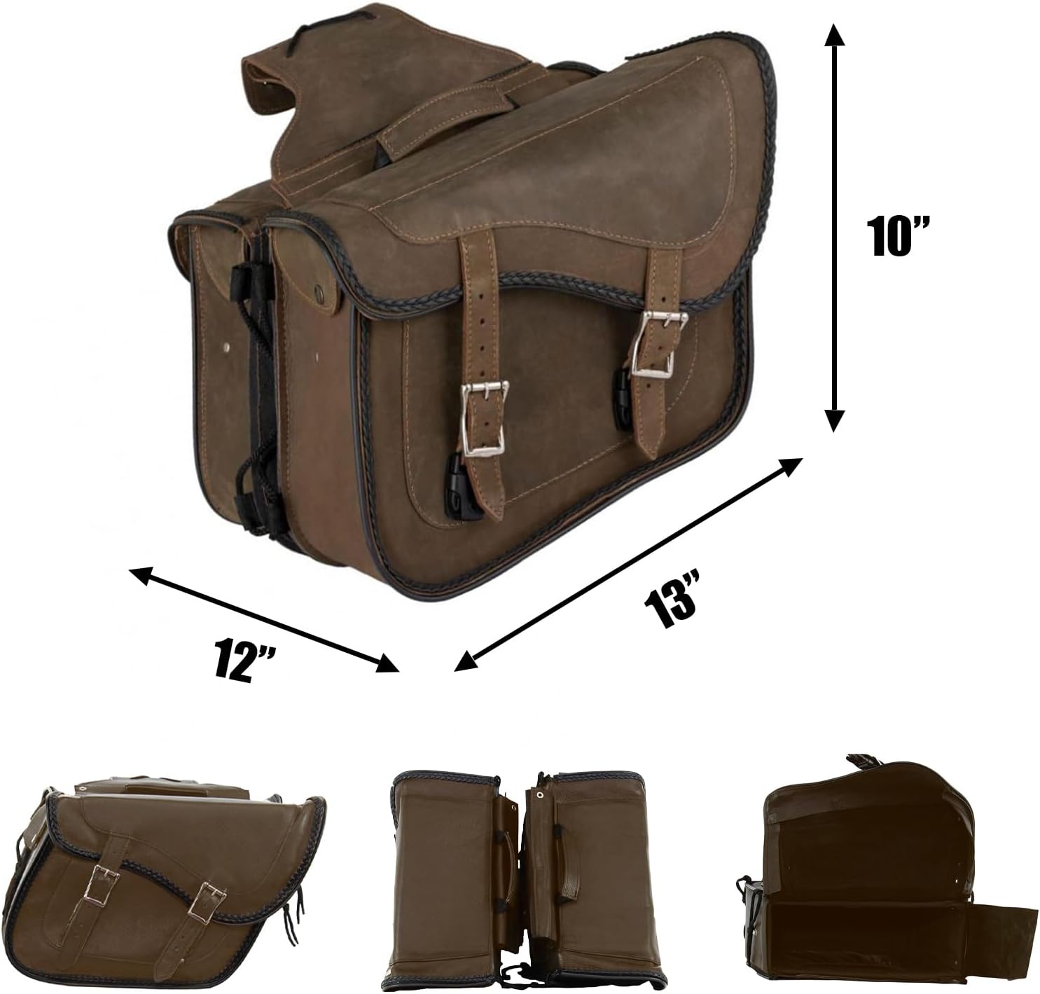GARGOYLE BELLS Motorcycle Saddle Bags Genuine Leather Motorcycle Luggage Bag For Softails Sportsters and Choppers (No Stud, Brown, 13”x13“x10”)