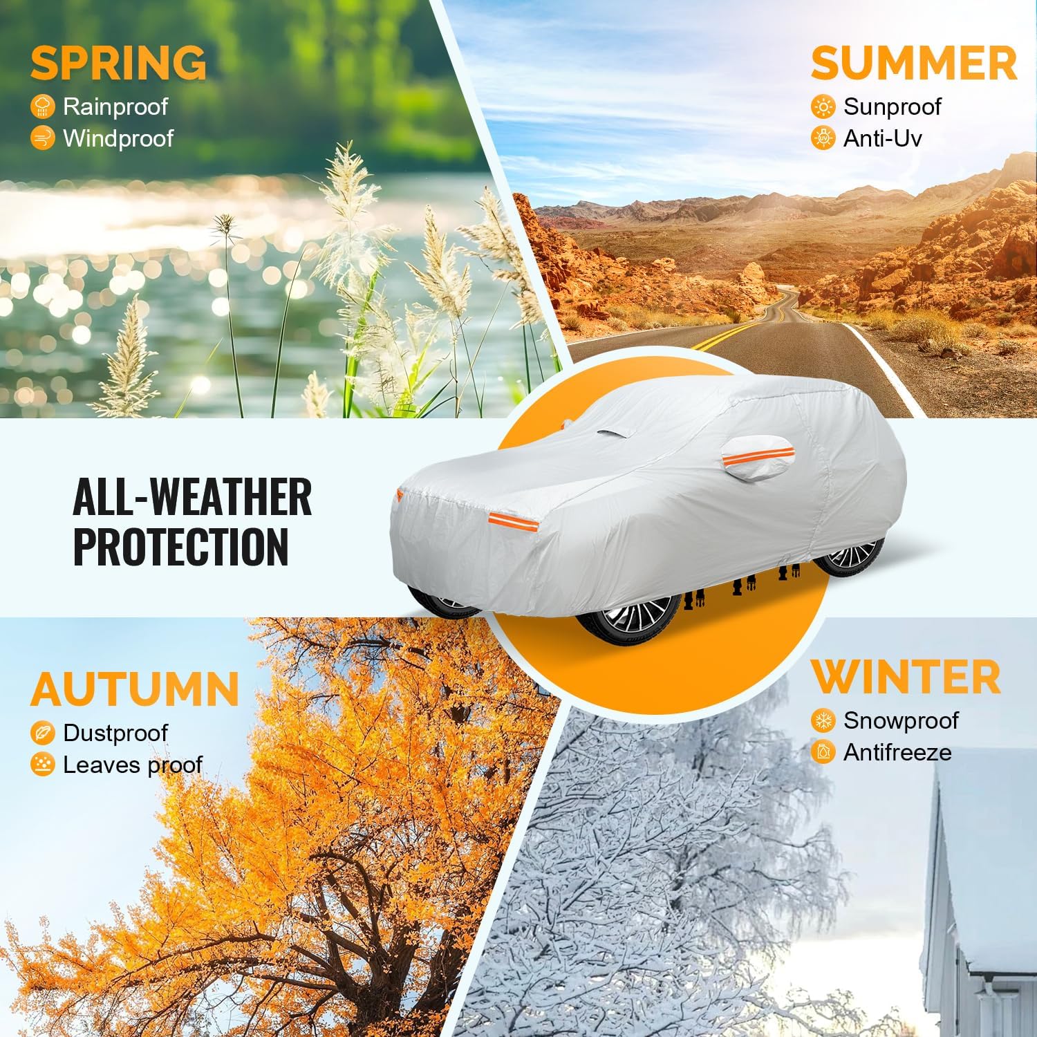 30 Layers SUV Car Cover for Automobiles All Weather Waterproof, Outdoor Snowproof UV Protection Windproof, Door Zipper, Soft Cotton, Heavy Duty Universal Car Covers, (Silver, Fit SUV 181"-190")