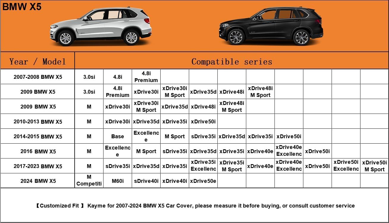 - 【Suitable for】— Custom fit for BMW X5 (2007-2025). Come with a large enough portable bag to store your cover when you do not use