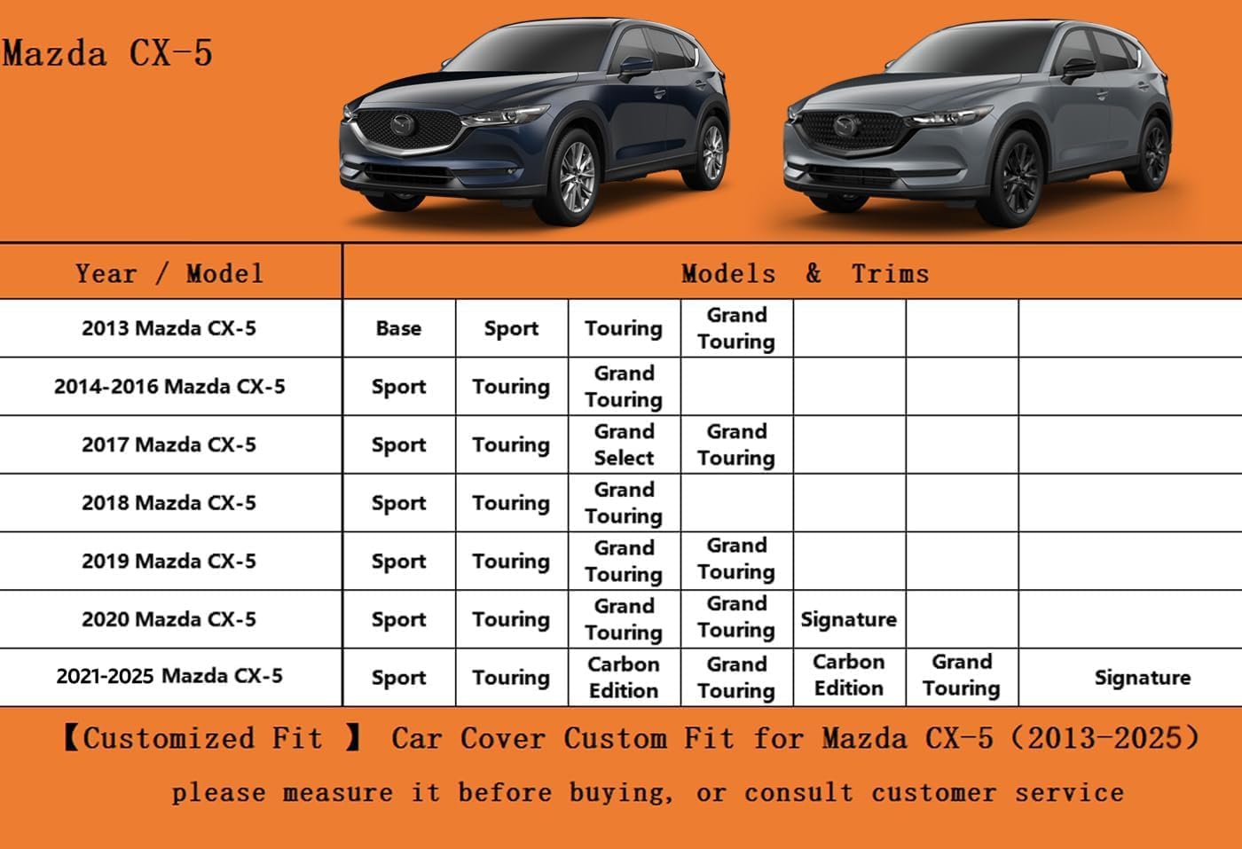 - 【Suitable for】— Custom fit for Mazda CX-5 CX5 (2012-2025). Come with a large enough portable bag to store your cover when you do not use