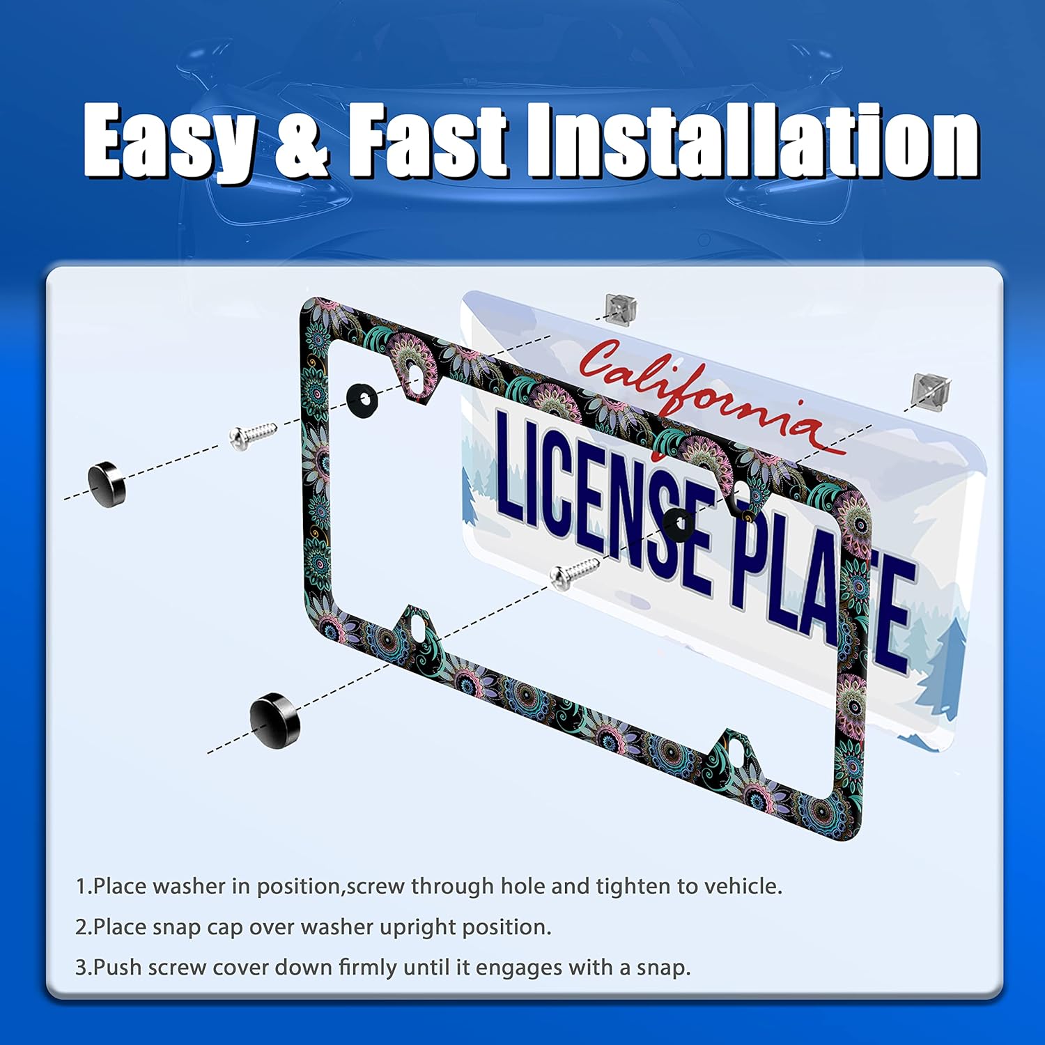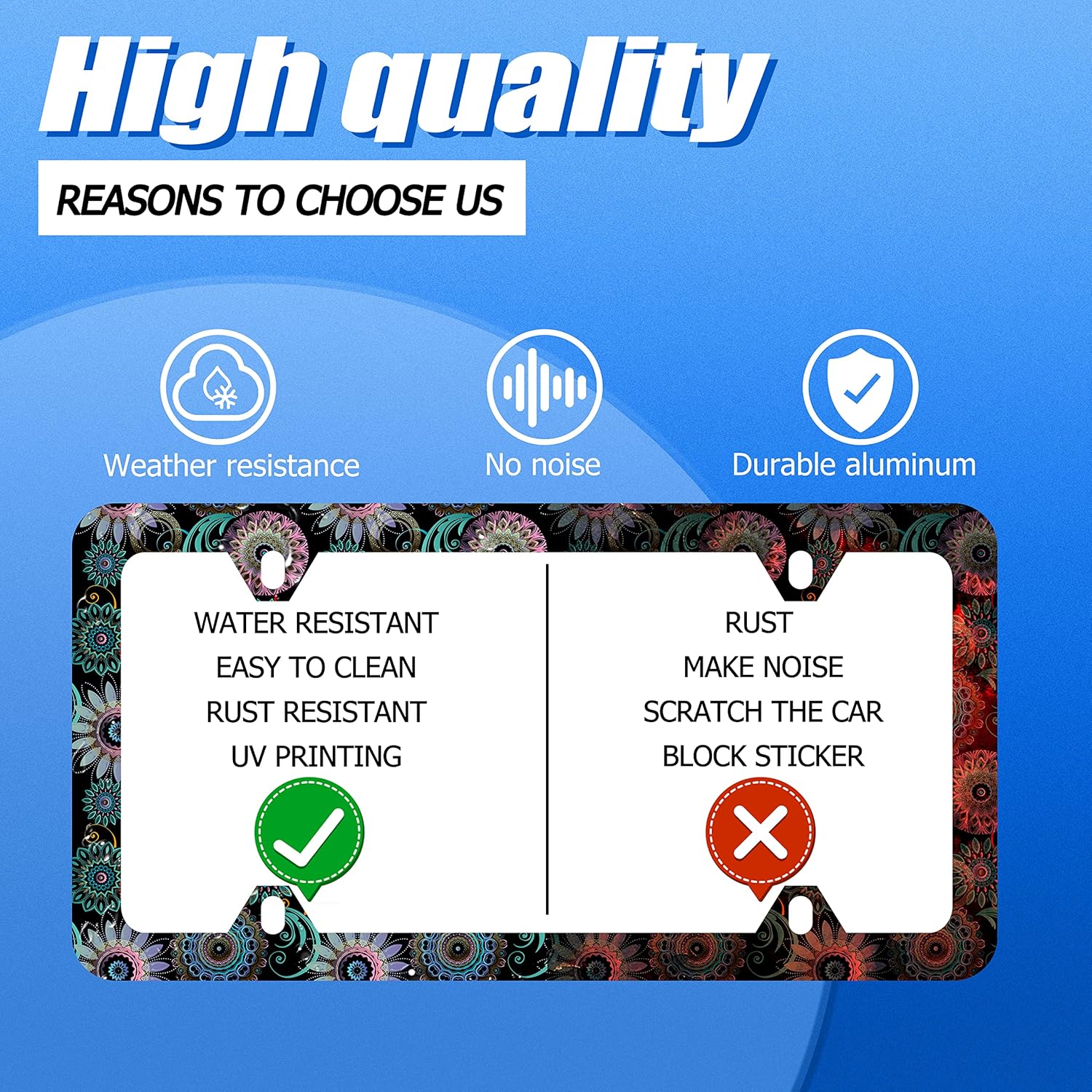 - Design:Use Advanced digital printing Protects license plate frames from Whether it's a car wash, heavy rain or hot weather, it still looks brand new,Let your car still be unique and stylish while driving on the road