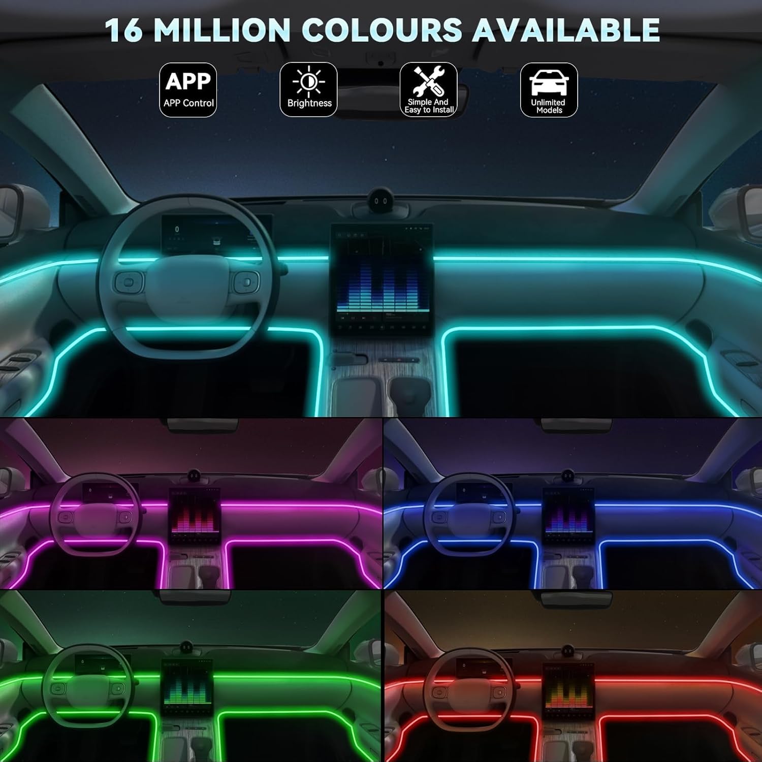 - App Control and 16 Million Colors: The Car LED Interior Trim Light Strip uses APP for control suitable for IOS or Andriod. Choose any colour you like from 16 million colors. Built-in 29 preset modes, APP control to turn lights on or off, dim or brighten and even adjust the speed of mode.