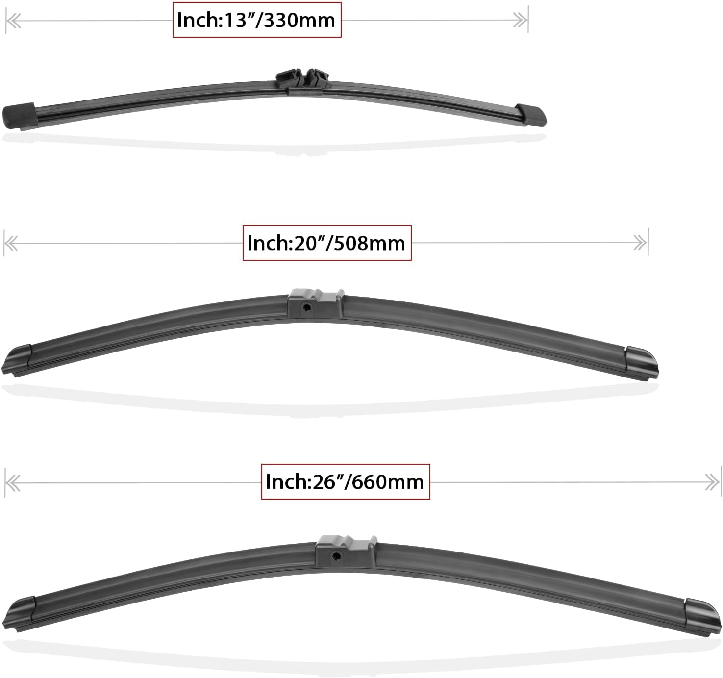 Windshield Wiper Blades Replacement for BMW X3 2011 2012 2013 2014 2015 2016 2017 Original Factory Quality Front Rear Wipers Blade Set for My Car - 26" 20" 13" (Pack of 3)