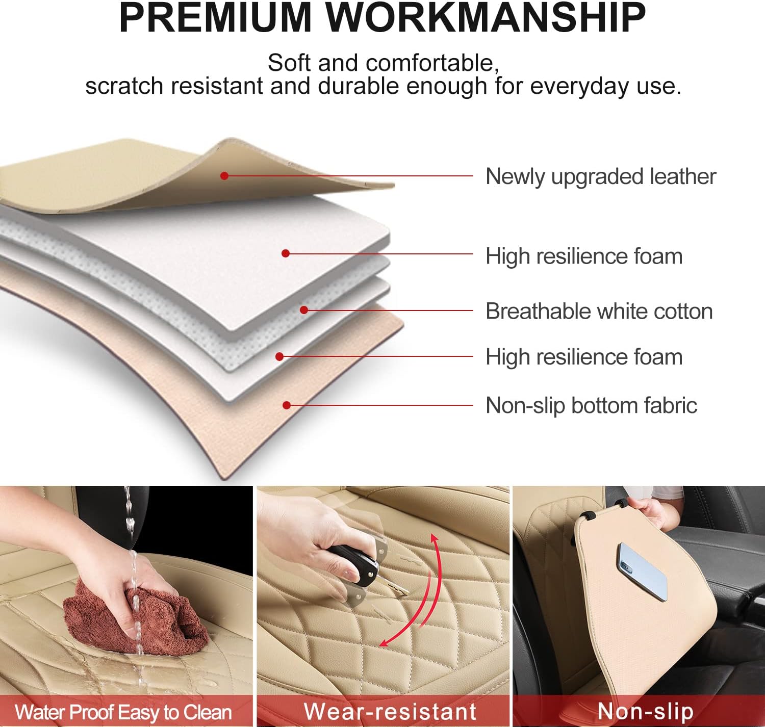 - Leather Soft & Comfortable: The 1 Pack leather front seat cover is wear-resistant, scratch-resistant, waterproof, and easy to clean. Rebound composite material is soft in touch, creating top resilience for maximum comfort during your drive. The non-slip backing ensures that the front seat cover stays in place. It's easy to care for and clean with a wet soft towel.
