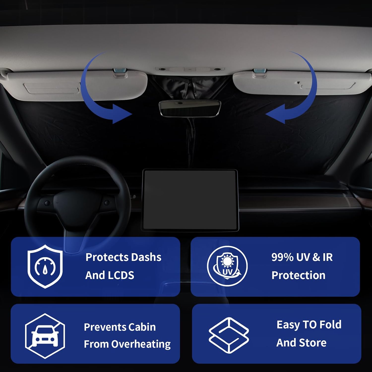 - ❥【Easy to Install And Store】Folding We provide two folding methods, so that folding is no longer a worry, more pleasant to use. Just need to fix the Front Sunshade with velcro. For shape-memory wire, it can be easily popped up and folded in daily use. You can place it in the glove box or door storage box with a storage bag. Check out the video guide.