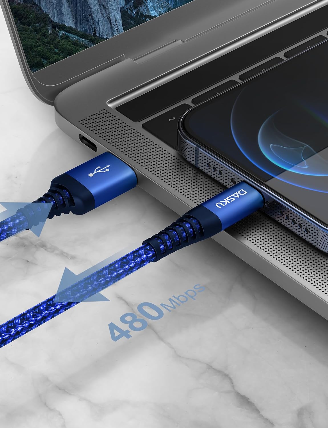 - HEAVY DUTY: DASKU iPhone phone charger cable has additional layer of protection design, it can be bend 90 degree 10,000 times, its small connector works with nearly all phone cases, covered with braided nylon jacket and aluminum shell, more durable, sturdy and tangle free.