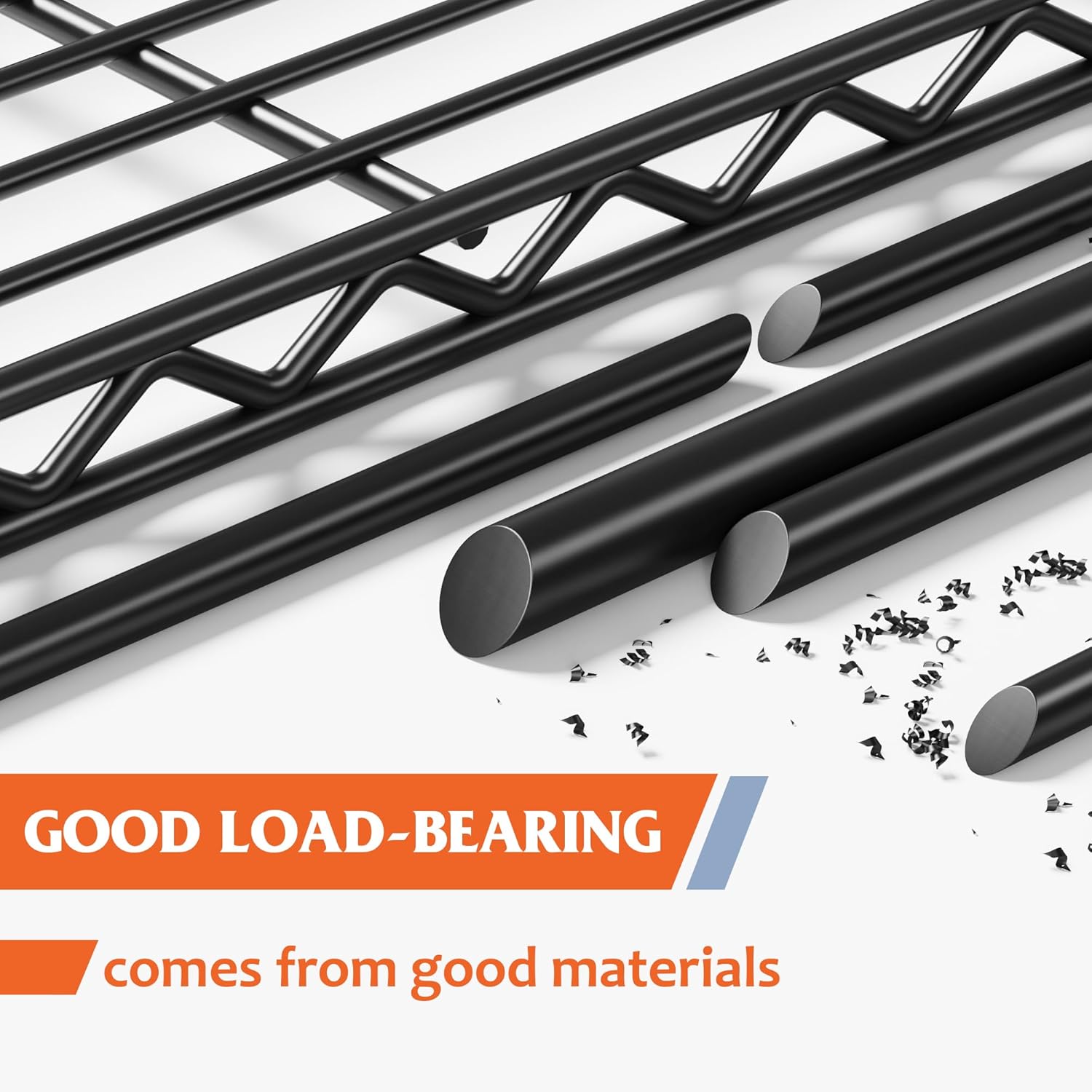 - 【850 LBS Super Sturdy Metal Shelving 】This metal shelves for storage made of heavy duty steel wire,and has undergone special coating treatment.Every solid thickened shelving with extra stiffener,can easily bear 170LBS each shelf ,850 lbs bearing capacity totally.which means this metal shelving unit will always be your reliable partner