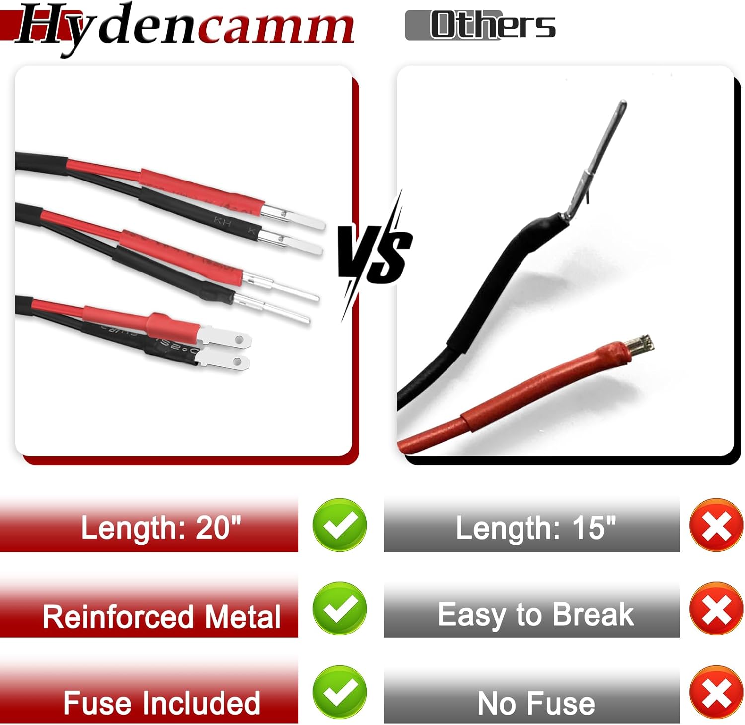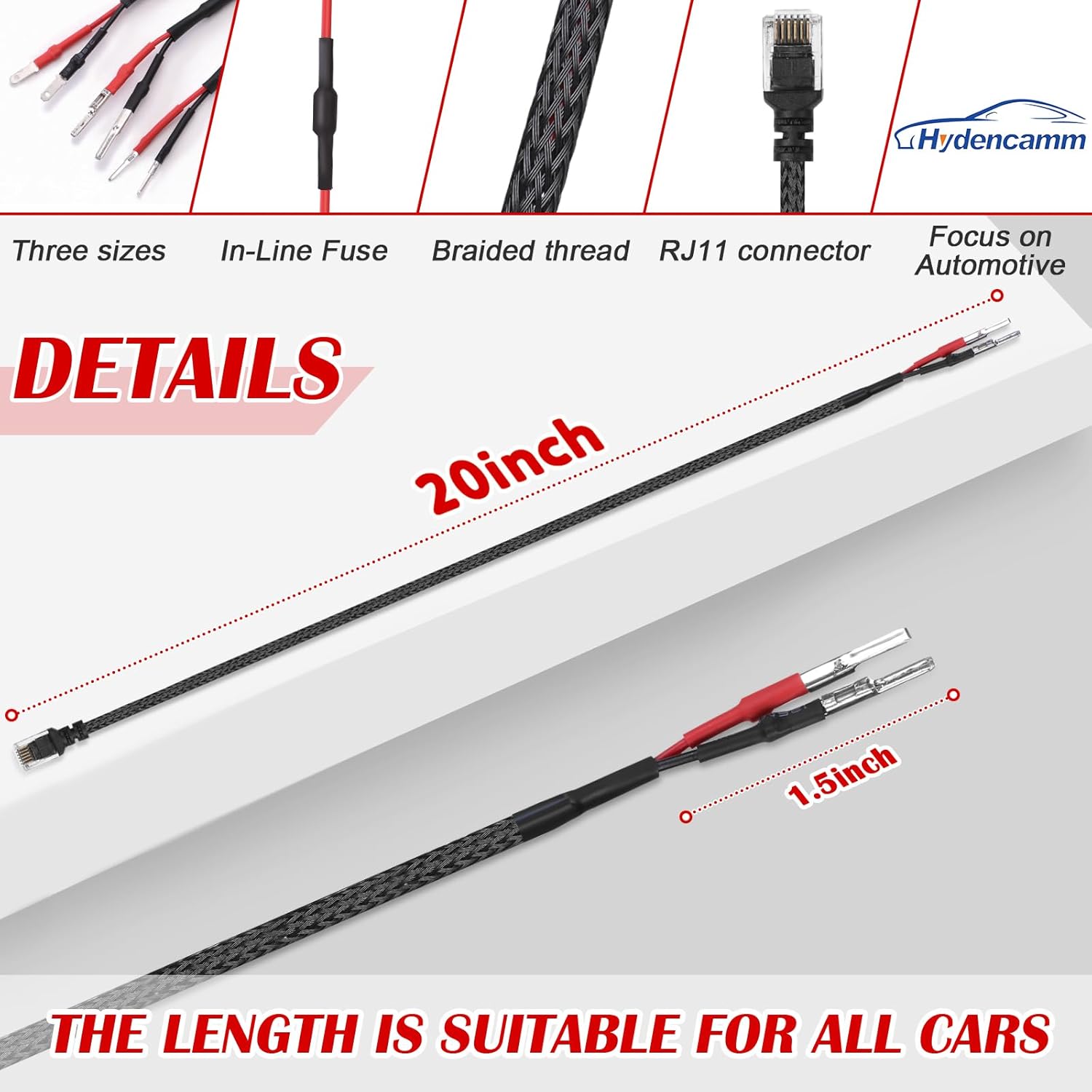 - ✅[Plug and Play] No need to cut, just stick the pins in and zip ties to secure. Plug in the pin wire, simply insert pins into 12v and ground in RJ 11 mirror plug. Instructions on how to use mirror wires plug tap are included