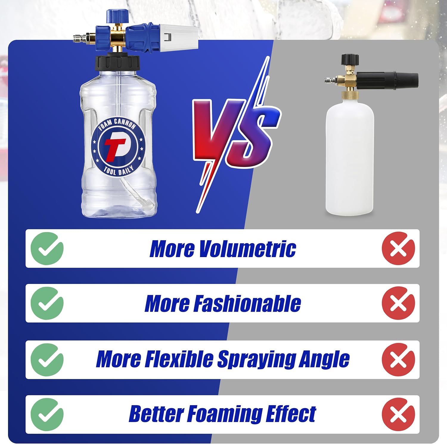 Tool Daily Foam Cannon for Pressure Washer, Adjustable Foam Blaster, Snow Foam Lance with M22 and 1/4 Inch Quick Connect, Additional Orifice Nozzle 1.1mm, 1.5 Liter